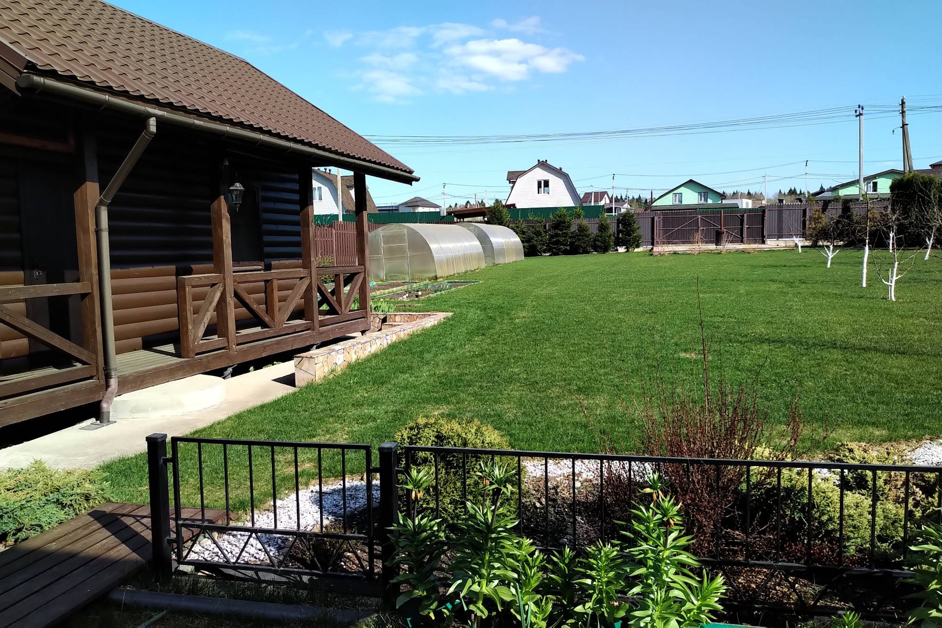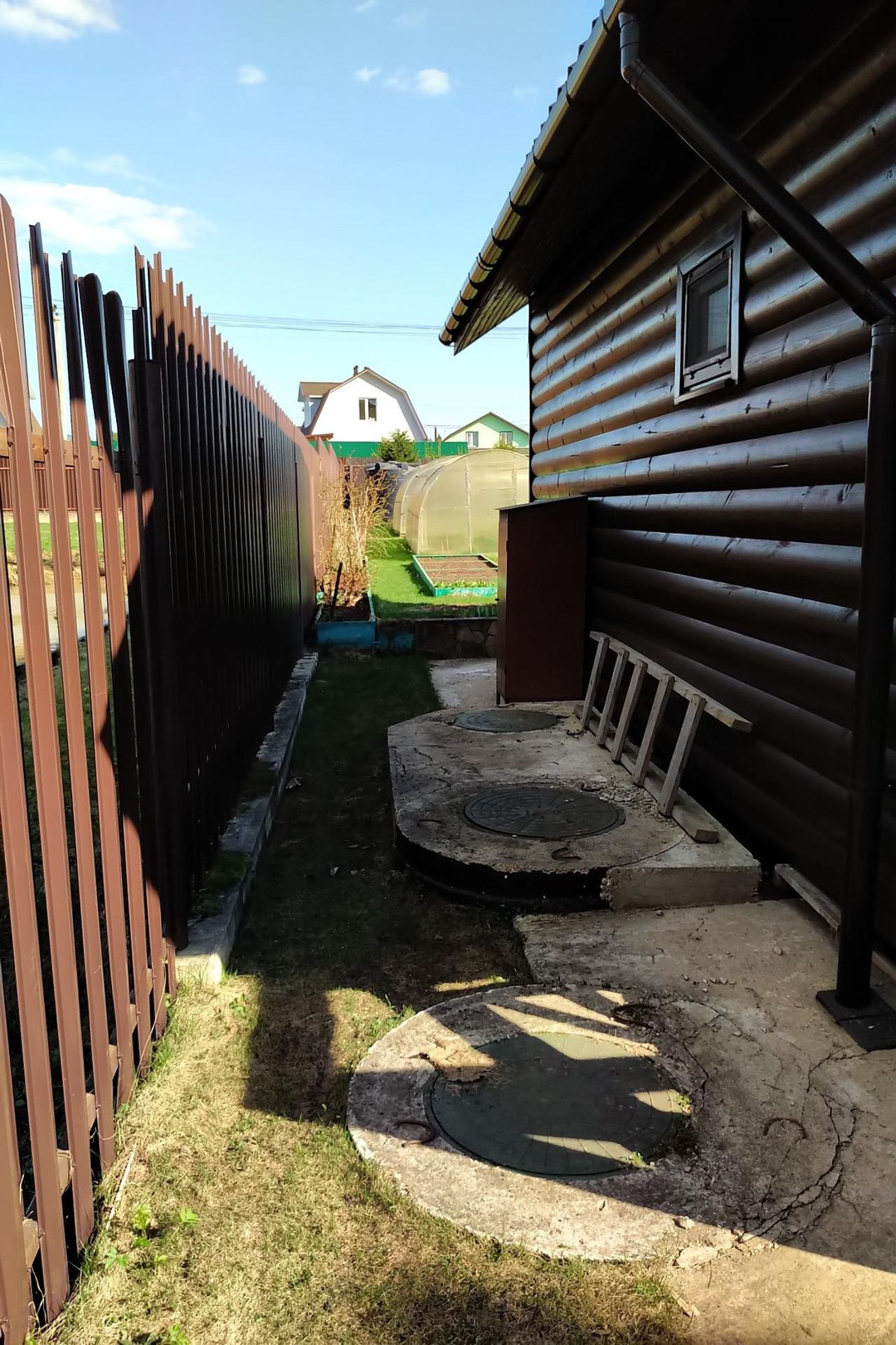 Продается огороженный благоустроенный участок в деревне Голенищево с жилым домом на участке, теплицы, площадка для автомобилей.