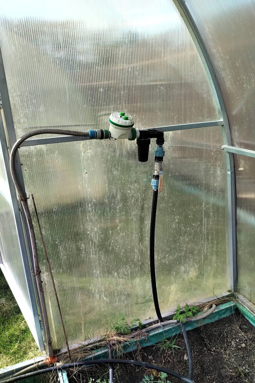 *установлена вместительная емкость питающая обе теплицы