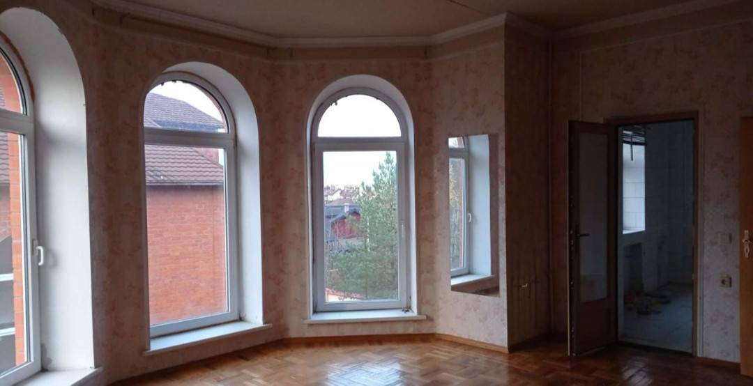 Здравствуйте! Продаётся шикарный жилой дом в 449,4 кв м, расположенный на 15 сотках земли под ИЖС, граничащий с красивым сосновым лесом (есть калитка с выходом к нему). Дом состоит из полноценных трёх этажей и четвёртый этаж мансардный. На первом этаже имеется зона бани с бассейном, комнаты, санузел, просторный холл и отдельный въезд в гараж. На втором этаже помимо многочисленных комнат располагается зимний сад и шикарная гостиная с камином. На третьем этаже есть несколько комнат и санузел, четвёртый этаж состоит из нескольких комнат с невысокими потолками. По периметру участка установлен кирпичный забор, на лицевой части ворота для въезда машин в гараж с калиткой.