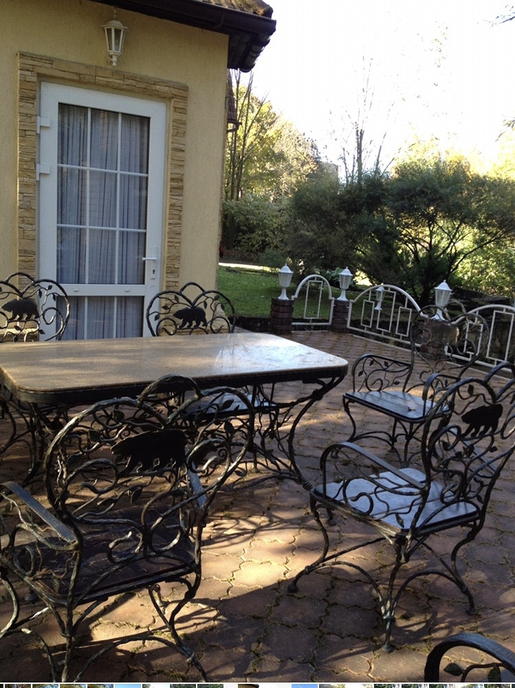 Гостевой дом, также выполнен из кирпича, имеет 2 этажа, кухня- гостиная, спальня в классическом стиле, санузлел. К гостевому дому примыкает крытая автостоянка на две машины.