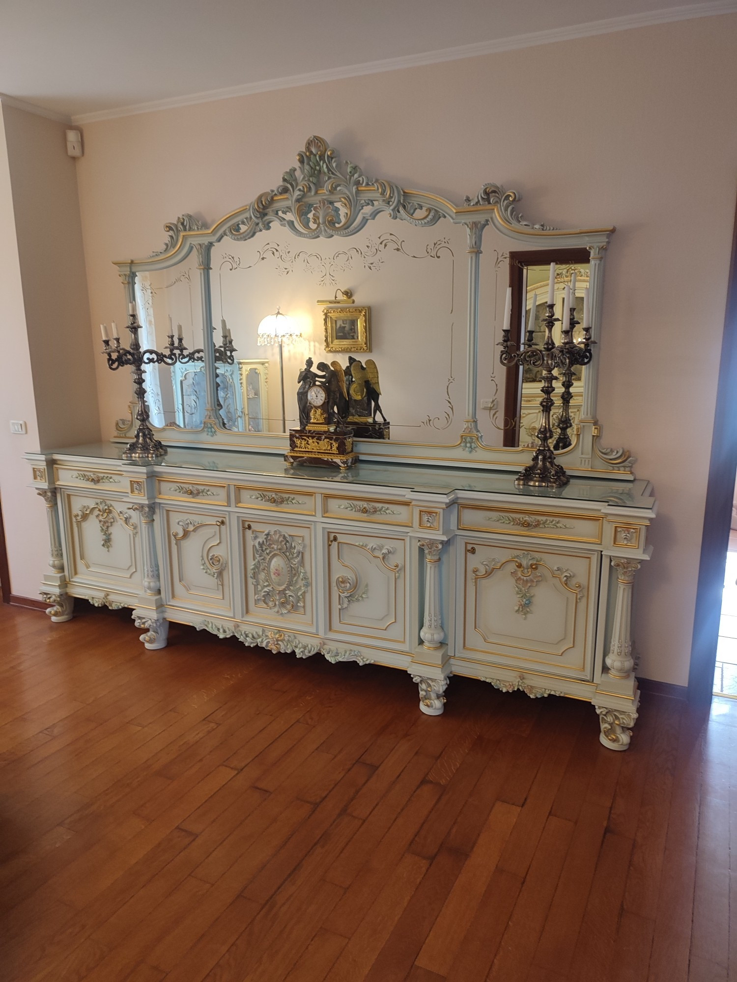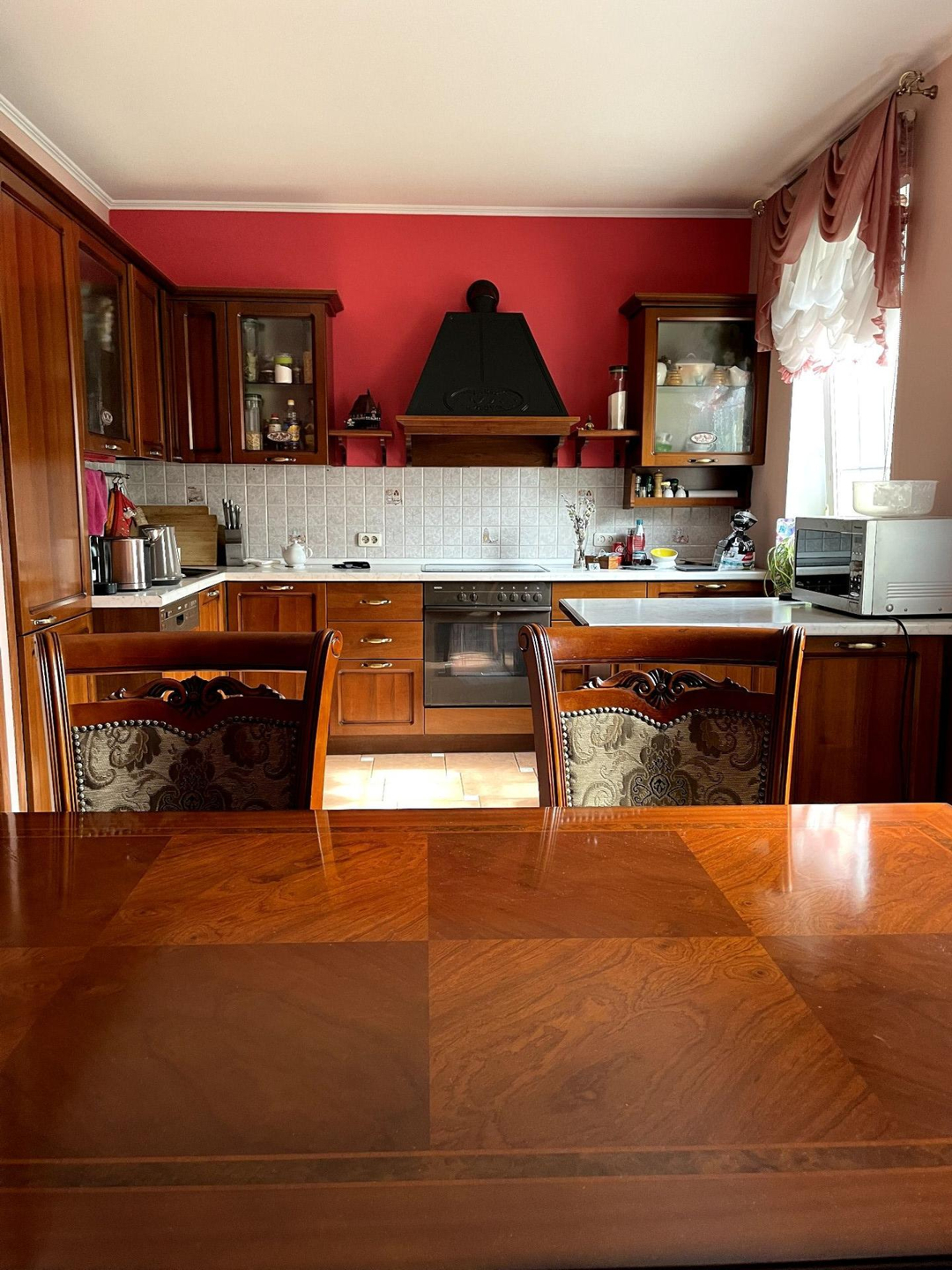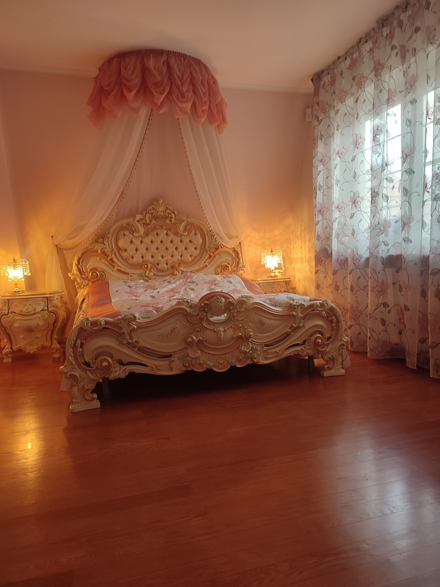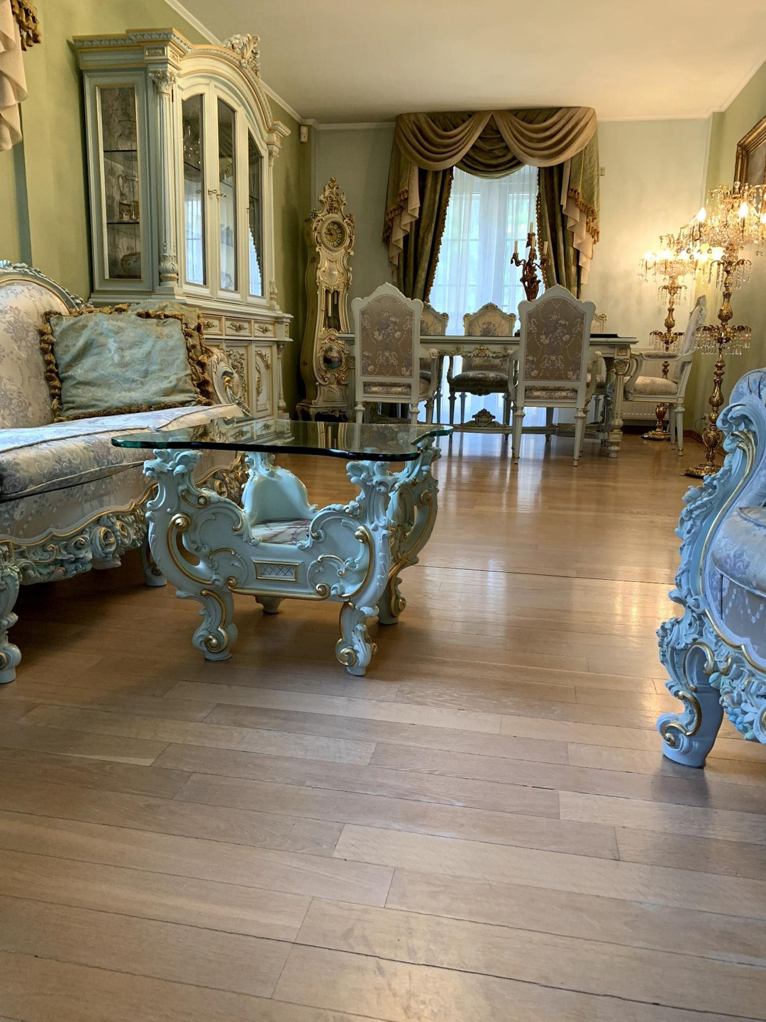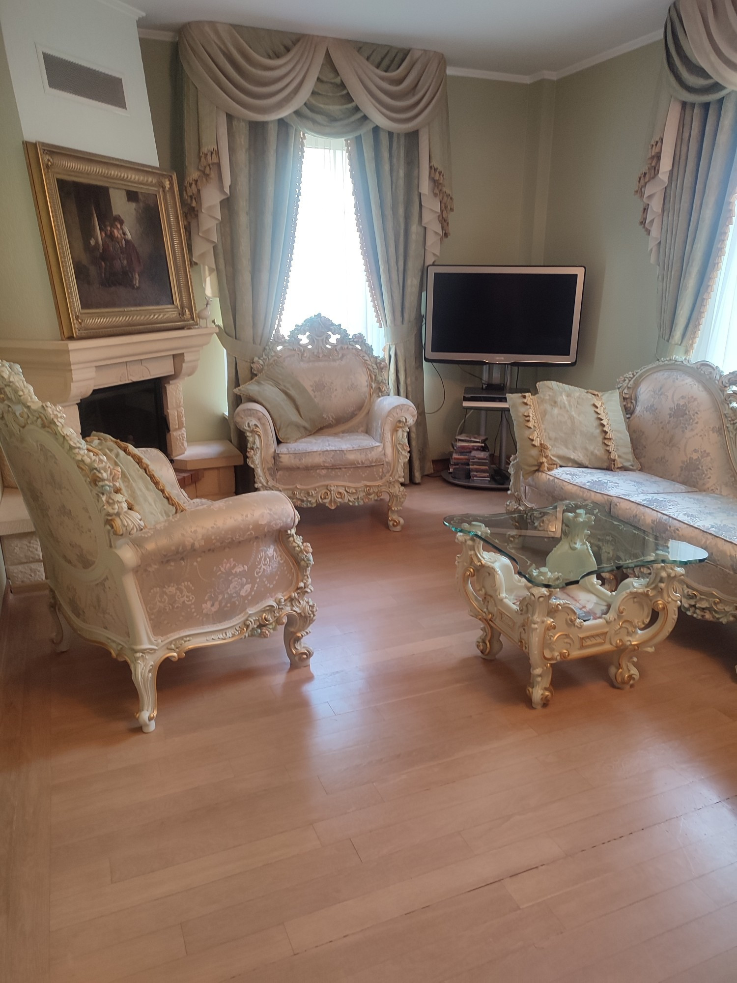 Основной дом выполнен из кирпича, состоит из 3 этажей, имеет настоящую черепичную крышу, меблирован в стиле барокко.