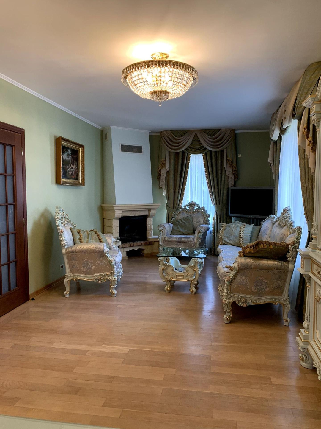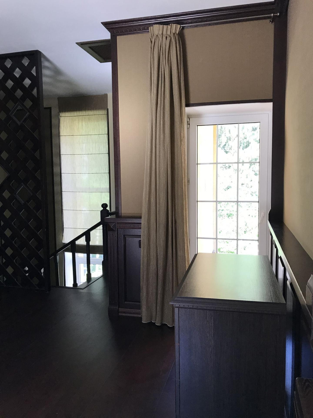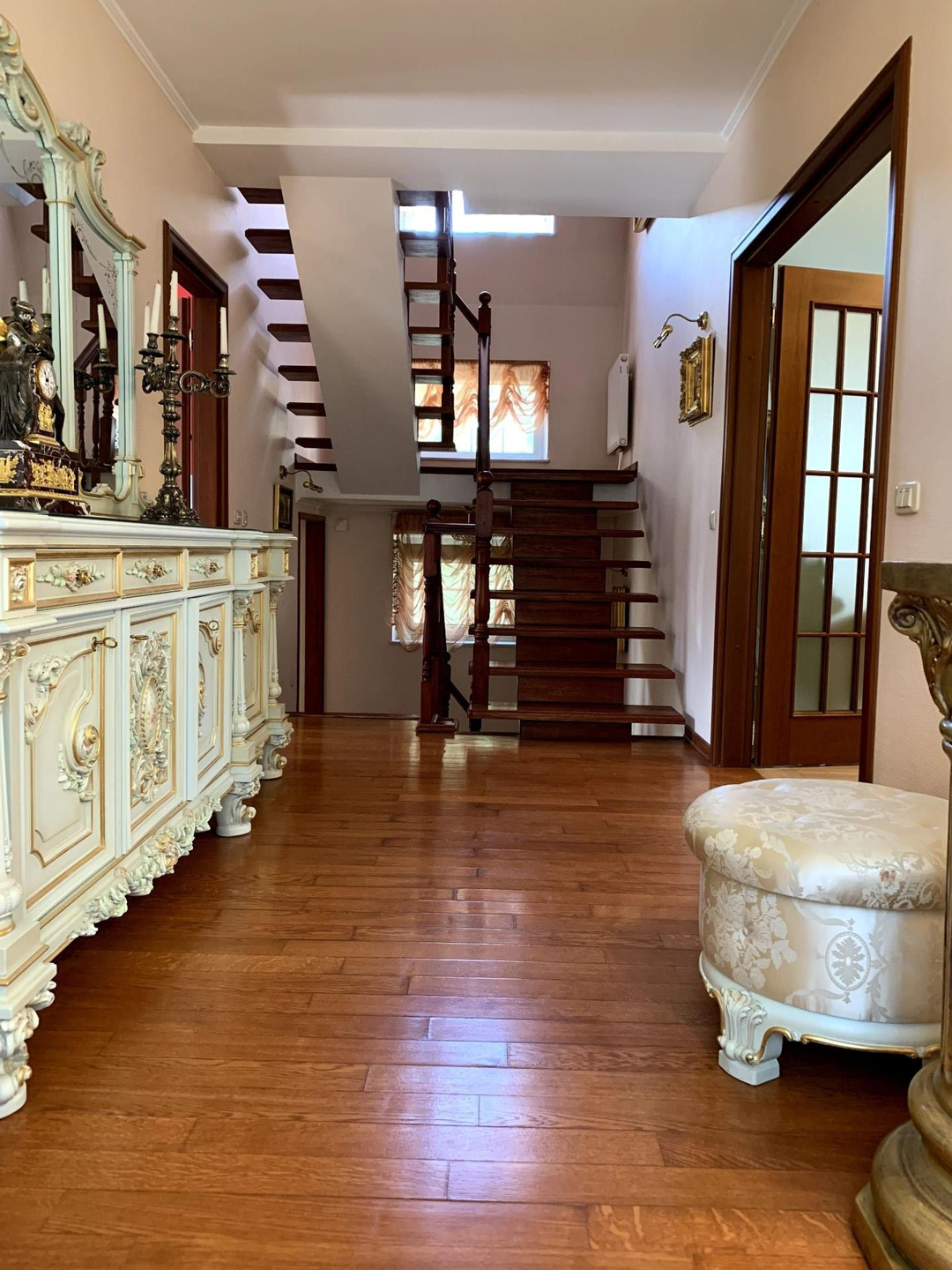 1 этаж- уютная, светлая гостиная с камином, просторный холл, кухня- столовая и санузел.