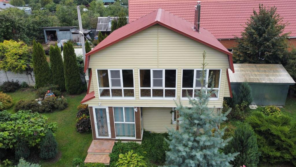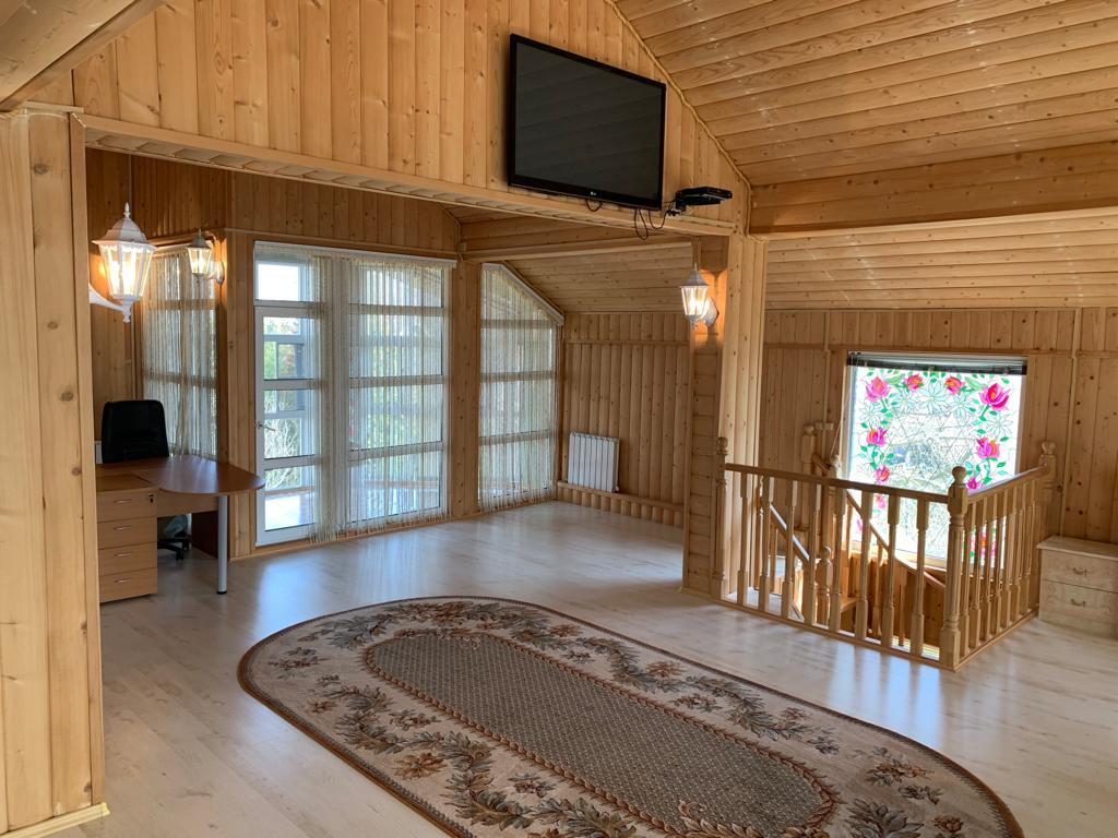 -Баня (гостевой дом) 2013 года постройки - отдельно стоящее 2-х этажное здание, 2-ой этаж гостевой, баней не пользовались. Размер дома-бани 7,4 метра на 6,1 метр.