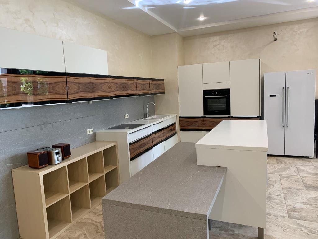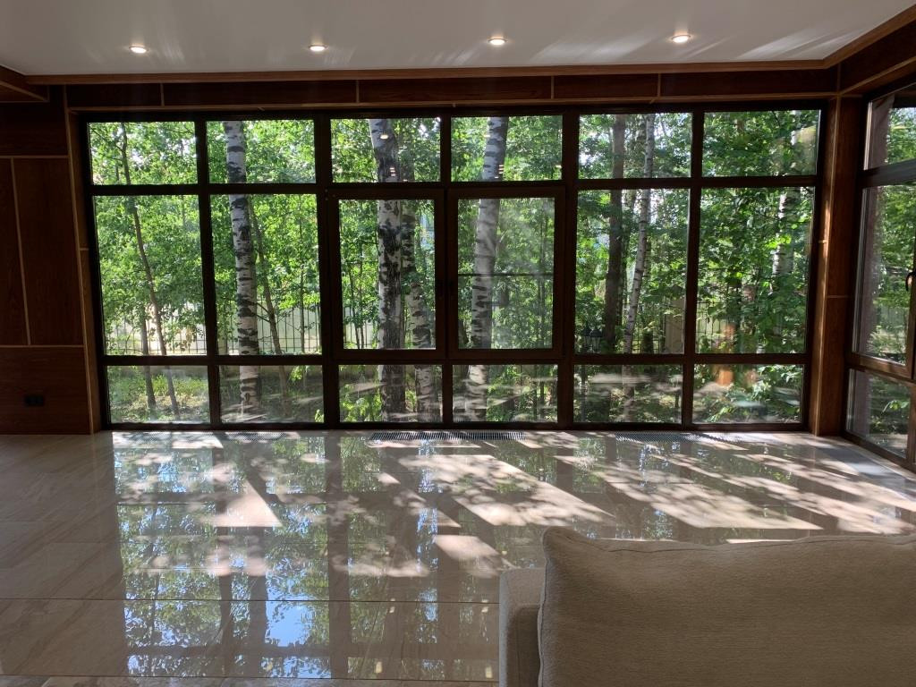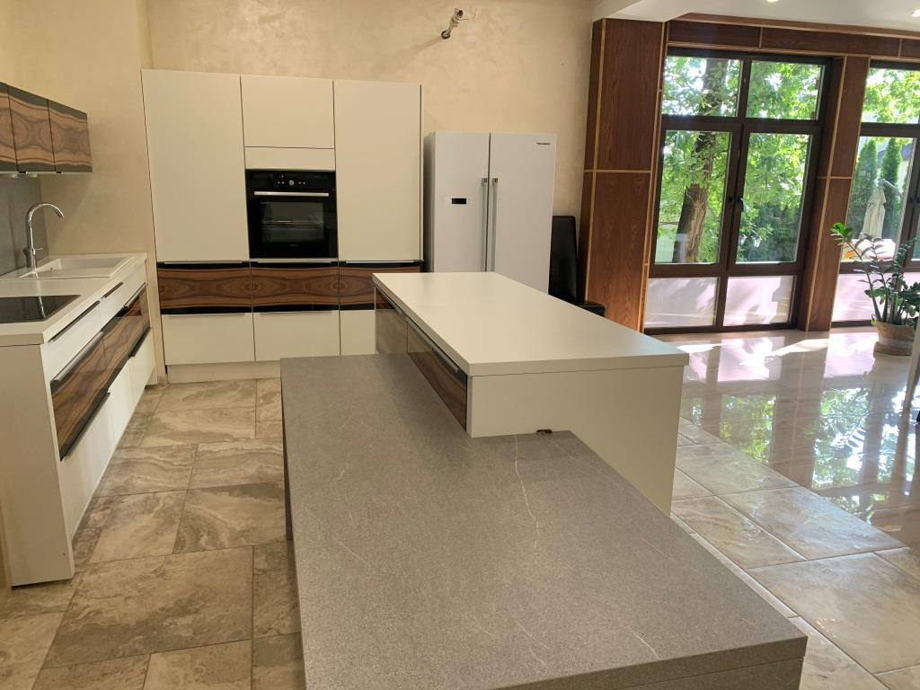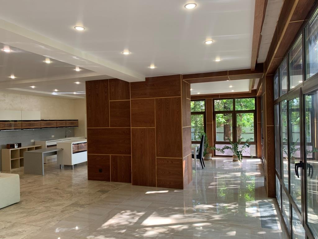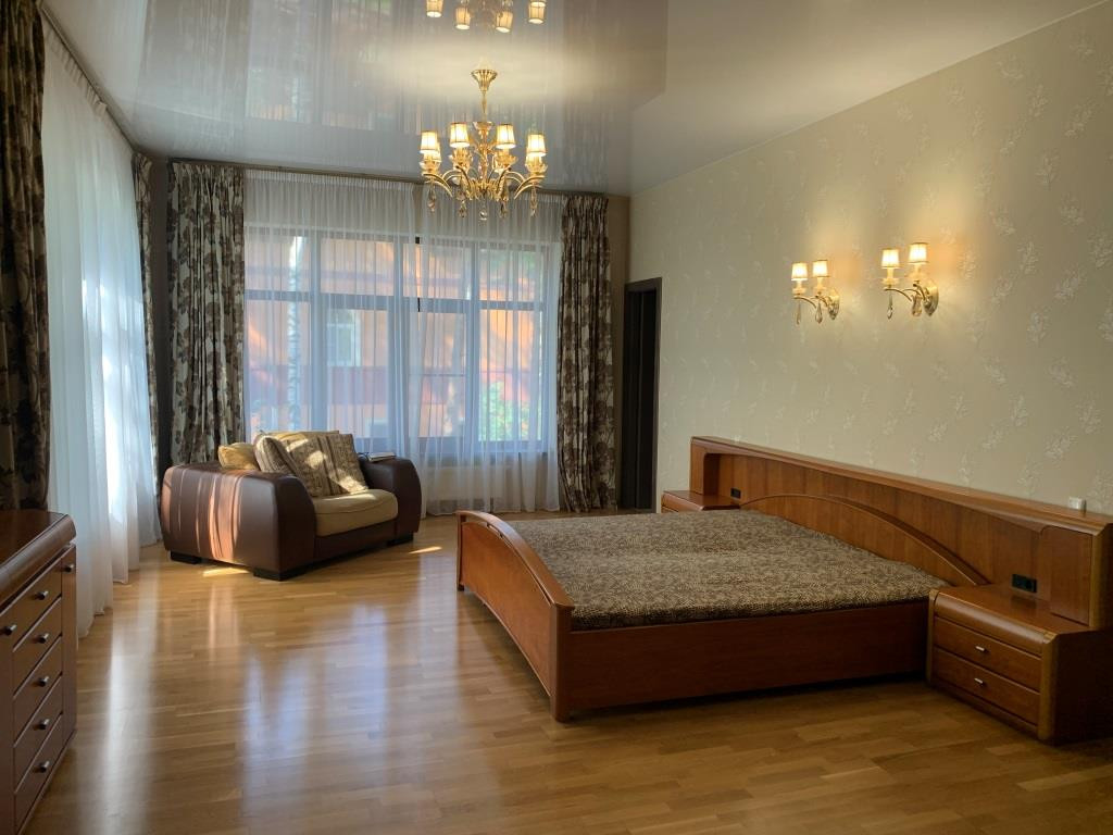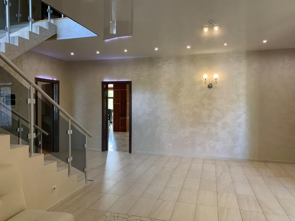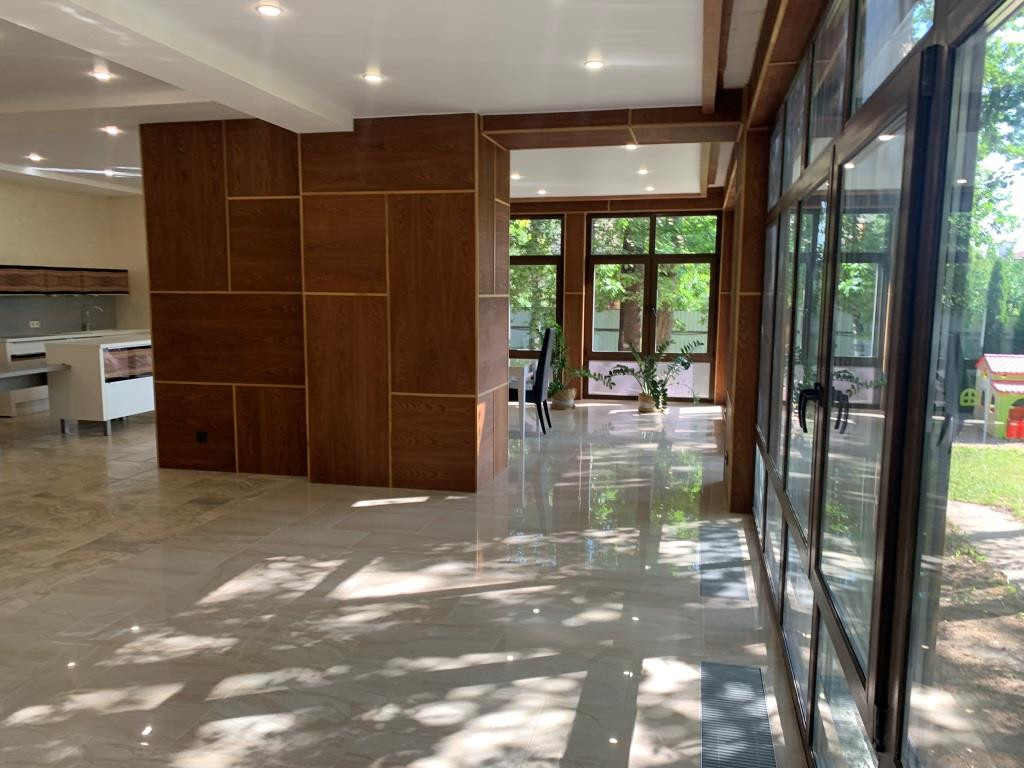 Дом с мебелью и дизайнерской отделкой в современном стиле на лесном участке в элитном охраняемом поселке Фэмили Клаб. Панорамное остекление, встроенная итальянская кухня с техникой, 5 спален, 4 с/у, гардеробные, кабинет, бассейн, сауна, СПА зона, спортзал. много деревьев (дорожки натуральный камень), дренаж, спорт площадка, На участке дом для персонала с навесом для машин, автоматич. ворота.