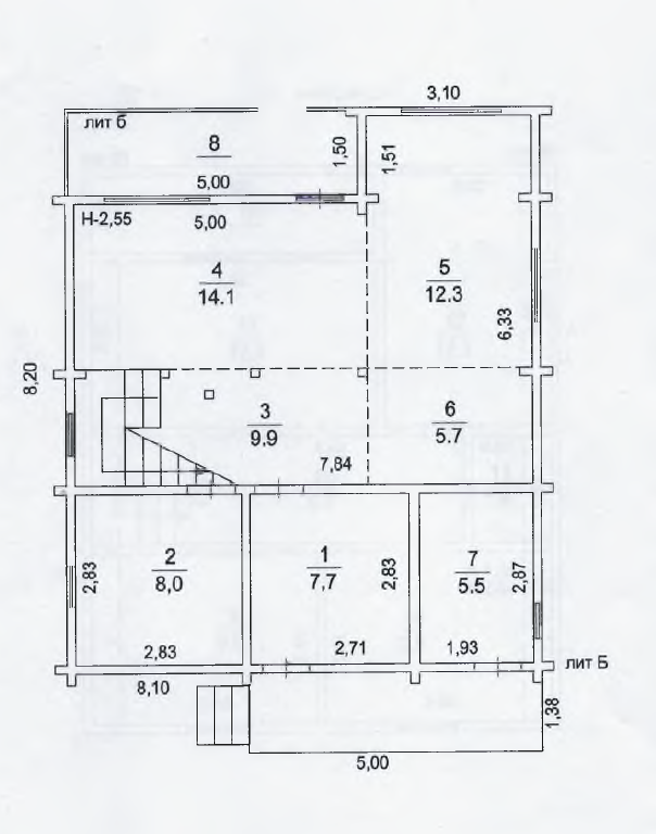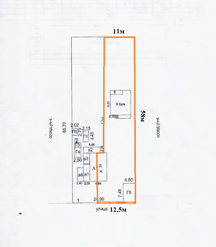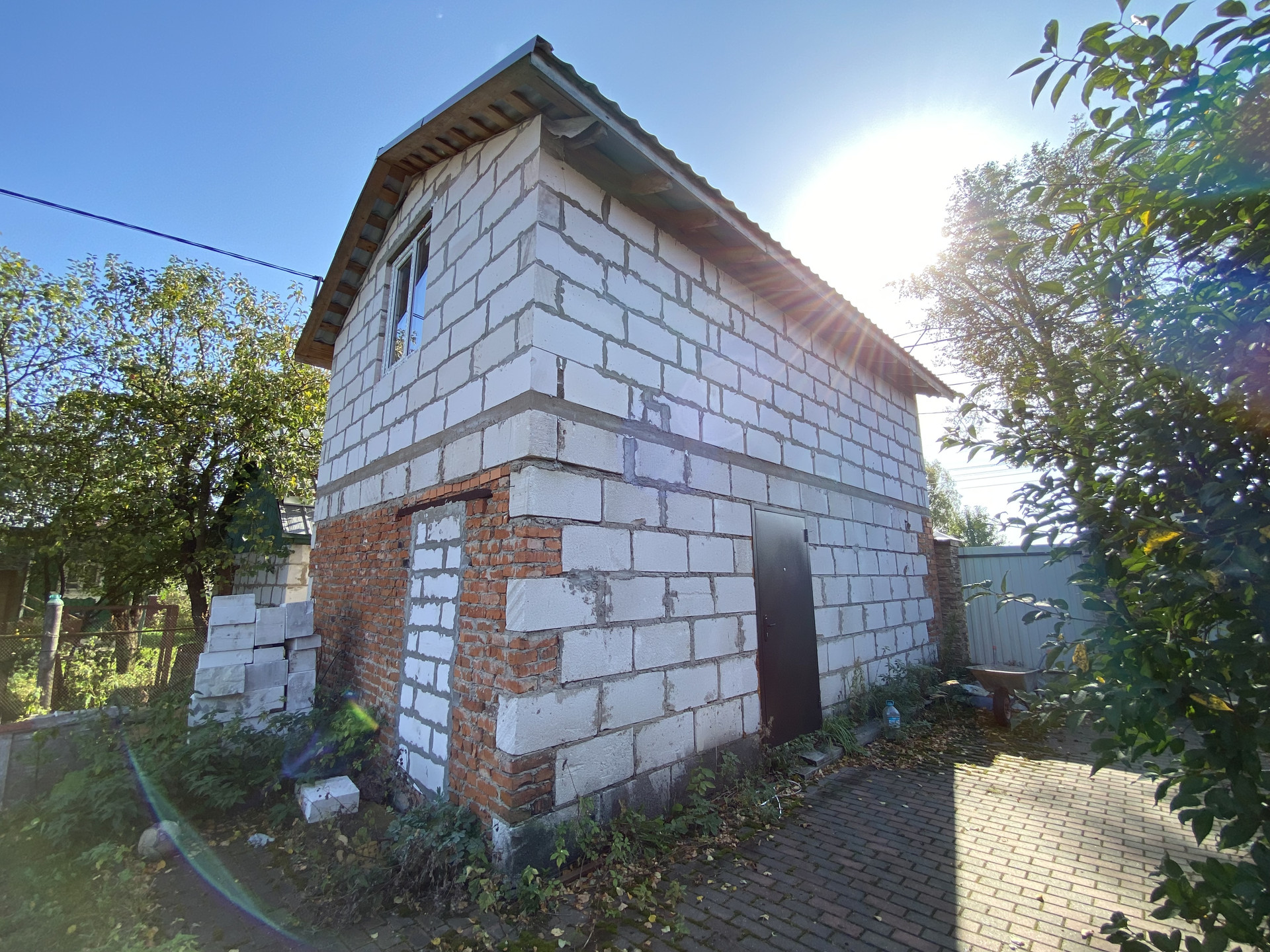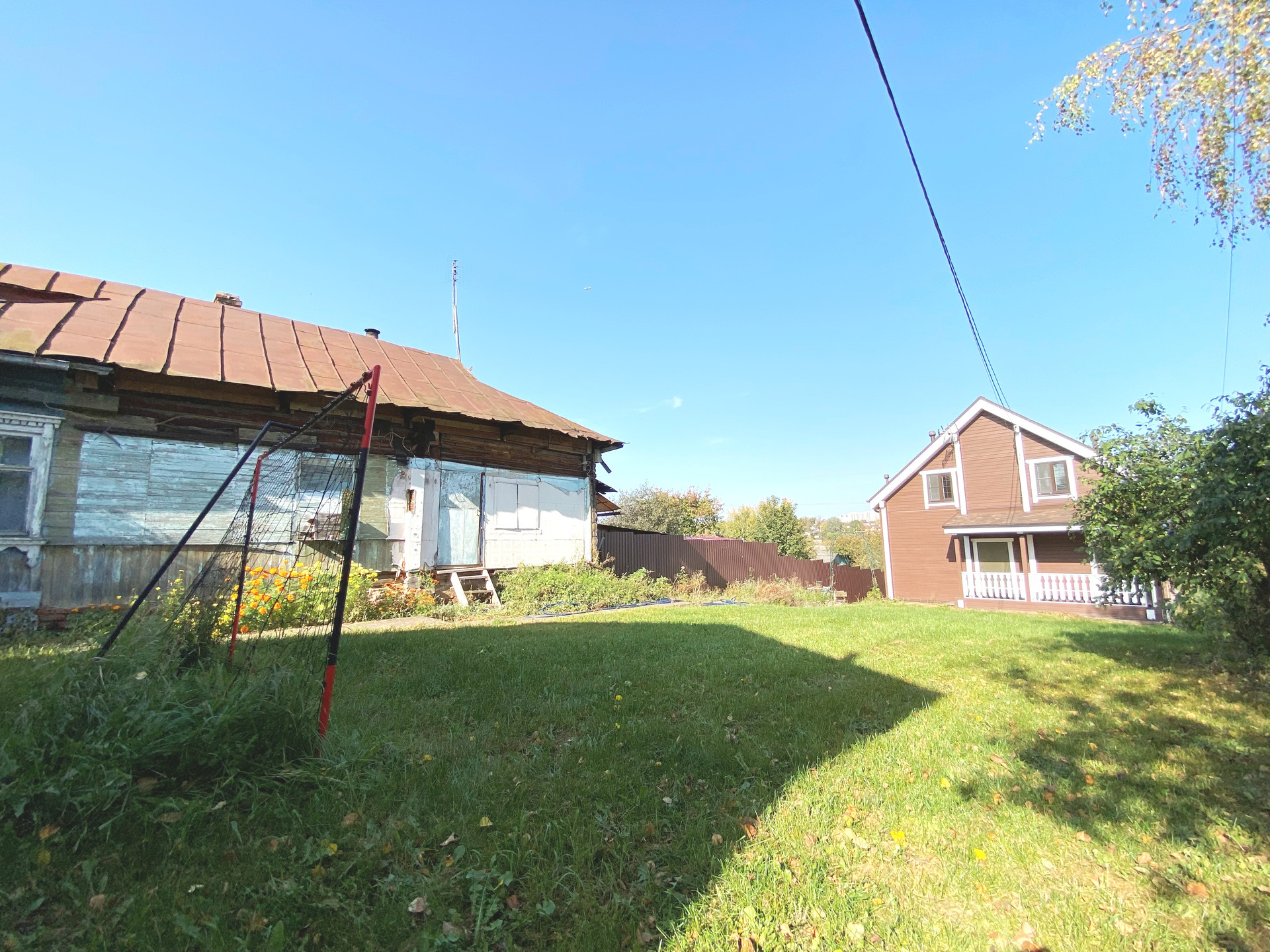 На участке есть часть дома 1938 года постройки и 2-х этажный гараж 7,48х4,8