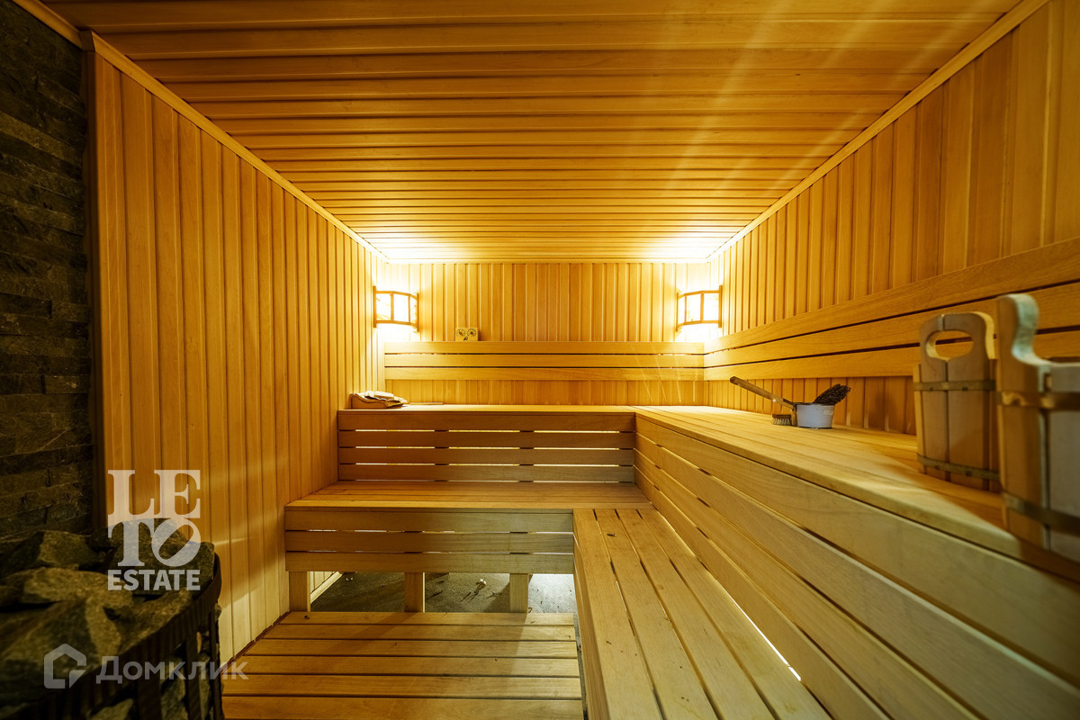 На первом этаже расположена просторная гостиная с выходом на террасу с зоной барбекю и подогревом. Местом покоя и умиротворения является новая дровяная сауна.