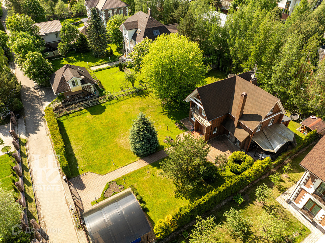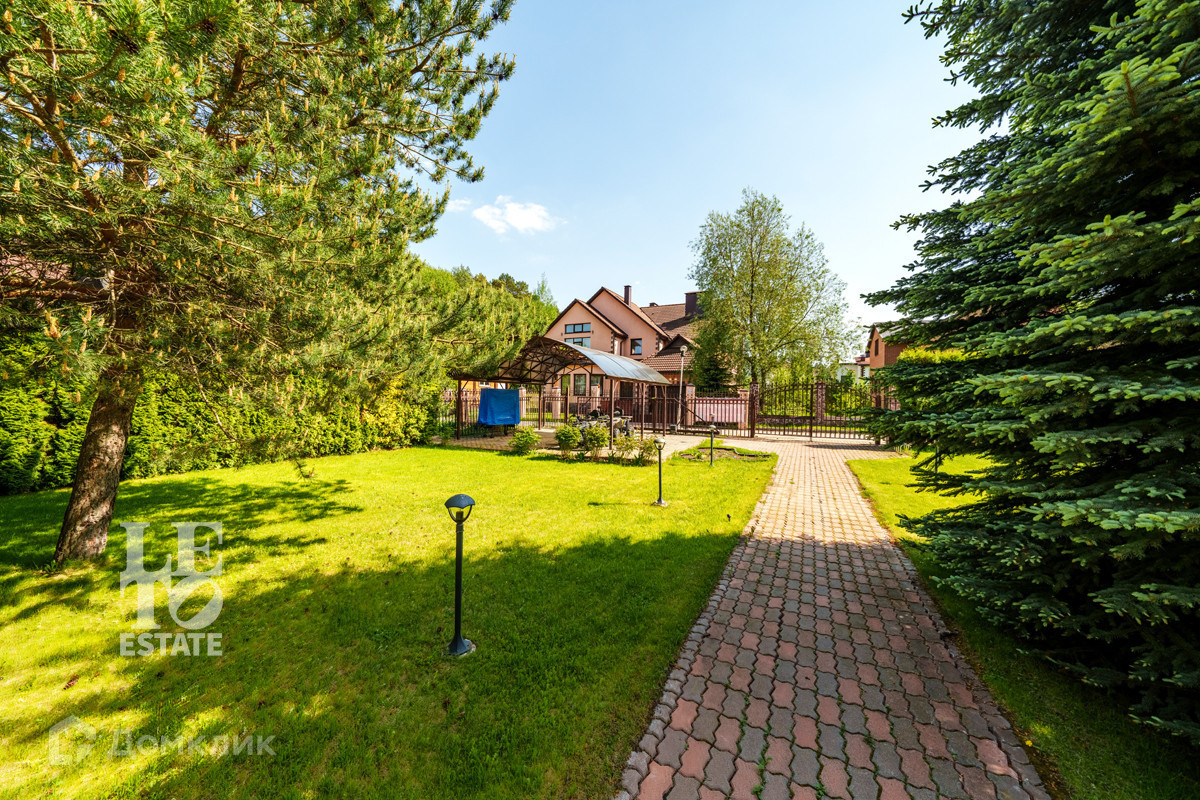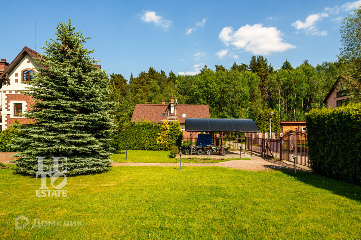 На участке правильной прямоугольной формы, площадью 12 соток, расположены детская площадка, навес для 2-х а/м с автоматическими воротами и хозблок. Выполнен дренаж, уложен спортивный газон. Посажены ели, сосны, плодовые деревья: яблоня, слива, вишня и кустарники: белая и красная смородина, крыжовник. На участке сделано освещение. Преддомовая территория выложена тротуарной плиткой.