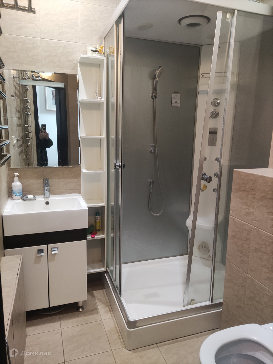 Первый этаж - кухня-гостиная-столовая, санузел с душевой кабиной,