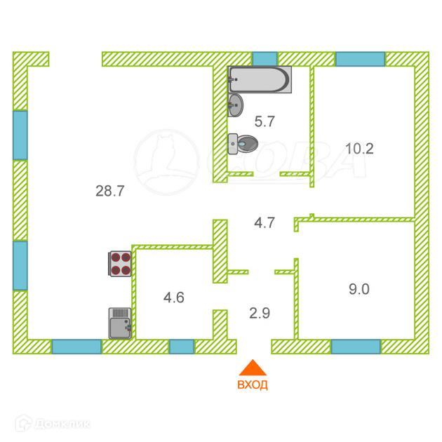 Общая площадь 70 м2