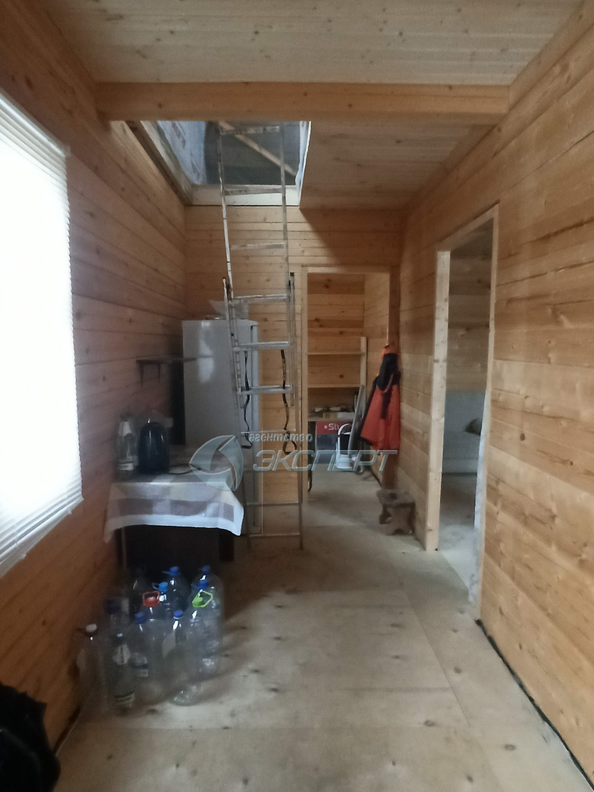 В доме на 1 этаже- прихожая, место под санузел, комната 24 кв.м., на 2 этаже -1 большое помещение.