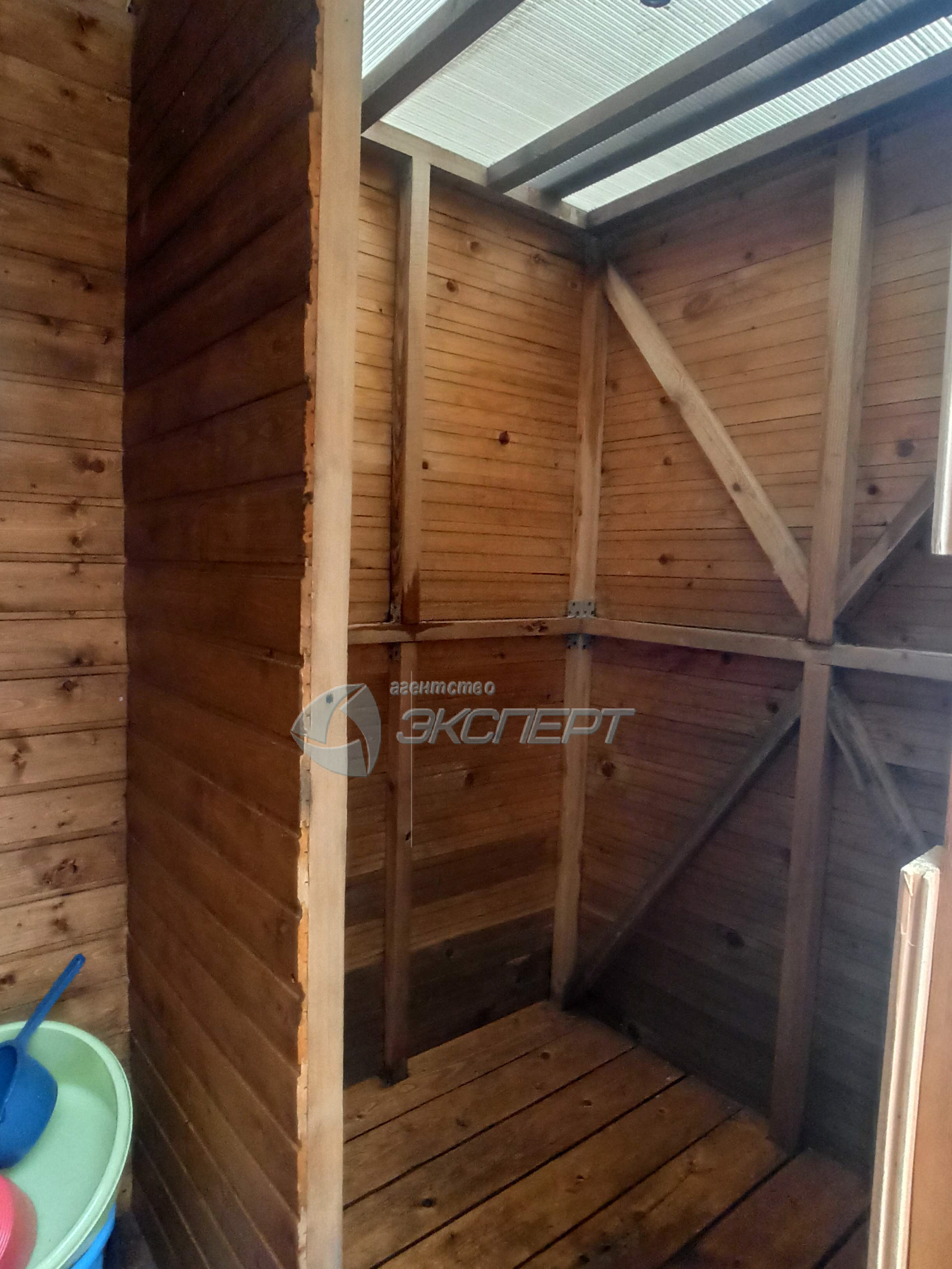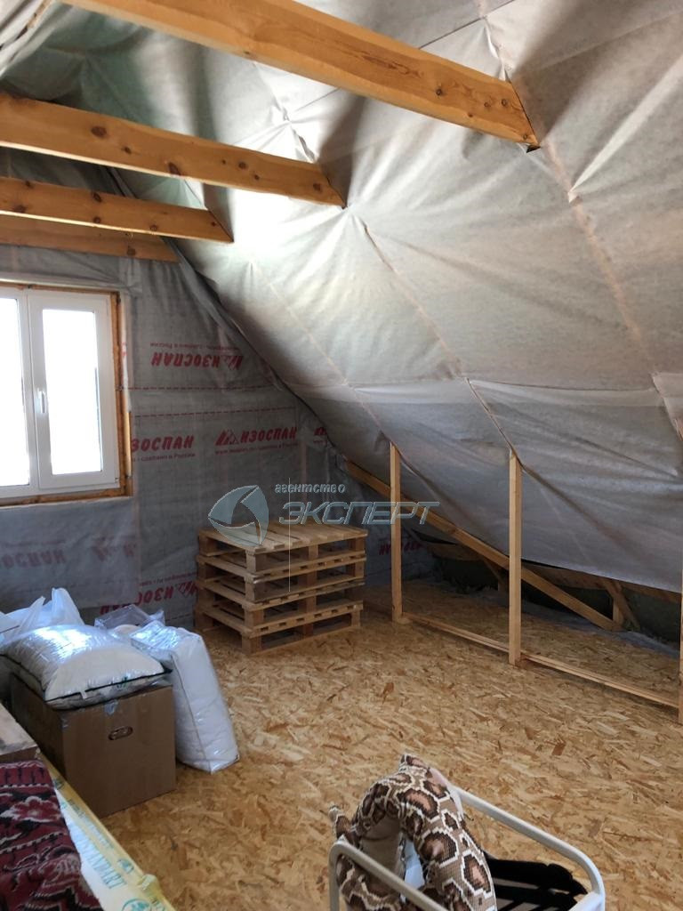 На участке построен дом из бруса с мансардой, общей площадью 72 кв.м (площадь сруба 6Х6 м) и большой открытой верандой. Мансарда подготовлена к чистовой отделке- утеплена, обтянута пароизоляционным материалом.