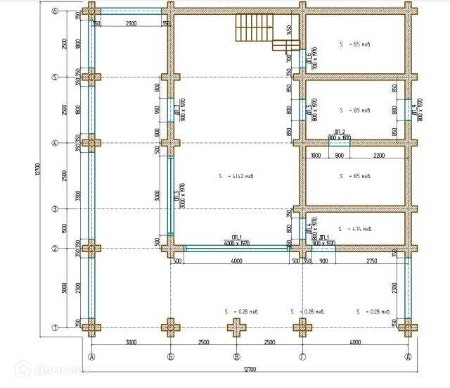 По проекту планировалось на 1 этаже разместить кухню-гостиную, парную, душевую, туалет, подсобное помещение, на 2 этаже две большие комнаты, можно сделать 3, балкон.
