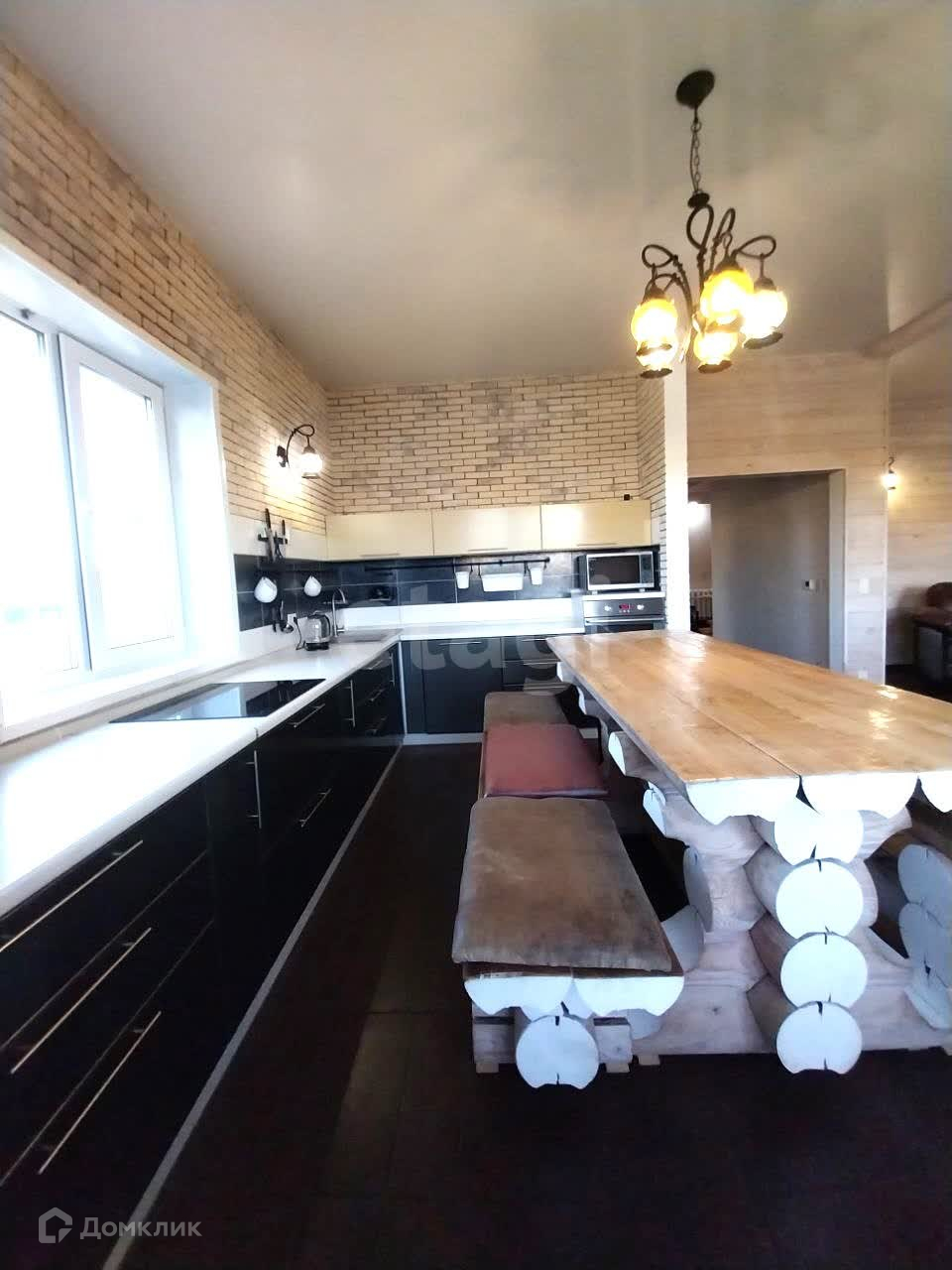 На первом этаже: гостиная с действующим камином и кухня-столовая, двухдверный холодильник, встроенная варочная панель, посудомоечная машина и духовной шкаф Еlеktrоluх, кухонный гарнитур остаются вам, санузел с душевой кабиной, гардеробная. Теплый пол. Высота потолков 3,3 м.