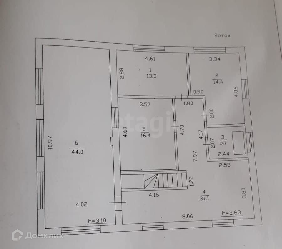 На втором этаже: 4 спальни и санузел с теплым полом и ванной, терраса 44 м. Высота потолков 2,7 м.