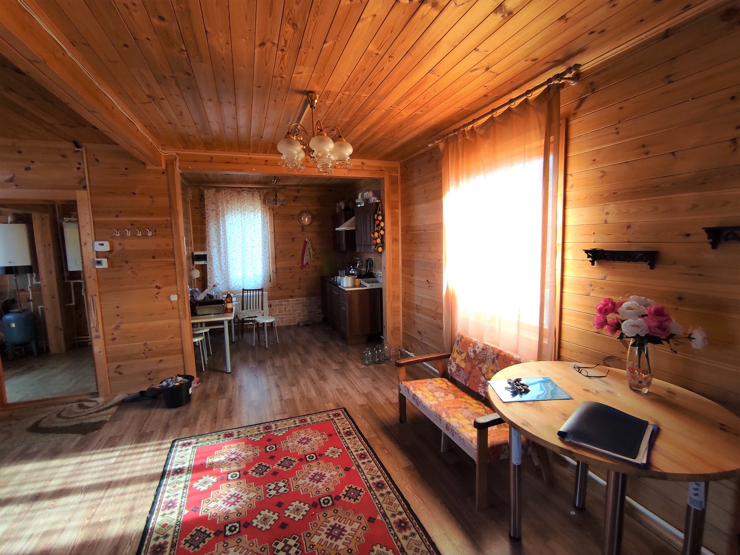 Дом расположен в тихом спокойном месте, утопает в зелени, к дому ведет дорога, покрытая асфальтовой крошкой. Дом подключён к газопроводу. В доме установлены газовый и электрические котлы. Автономный источник воды. Электричество - 15 квт. Канализация - экосептик. Участок - ИЖС.