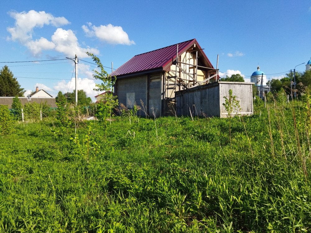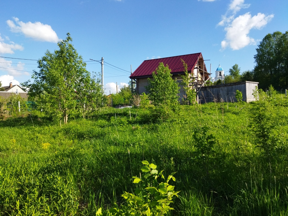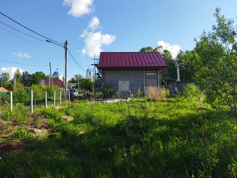 Высокое место, хороший подъезд, асфальт. Участок правильной формы 30х50. С участка открывается панорамный вид на Покровский храм! Лучшее расположение даже трудно придумать! Свет 15 кВт. Трубостойка есть на фото. Вдоль участка проходит газ! А в углу участка профессиональными строителями построен отличный 2-х этажный гостевой дом! Он выполнен из профилированного бруса 150 на 150, очень теплый и крепкий, с хорошей планировкой.  Конечно, дом требует определённых вложений (нужно вставить окна, провести в дом коммуникации, настелить полы…), но зато он новый, установлен на хорошем фундаменте (монолитная плита), и покрыт отличной фальцевой кровлей! Дом позиционируется как гостевой. Оставлено место под строительство основного дома! Все соседи построились, многие живут постоянно. Зимой дороги чистят. Вокруг деревни раскинулся лесной массив.