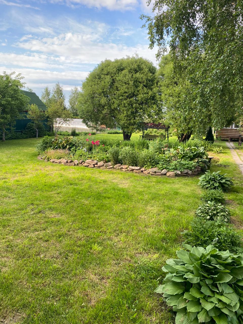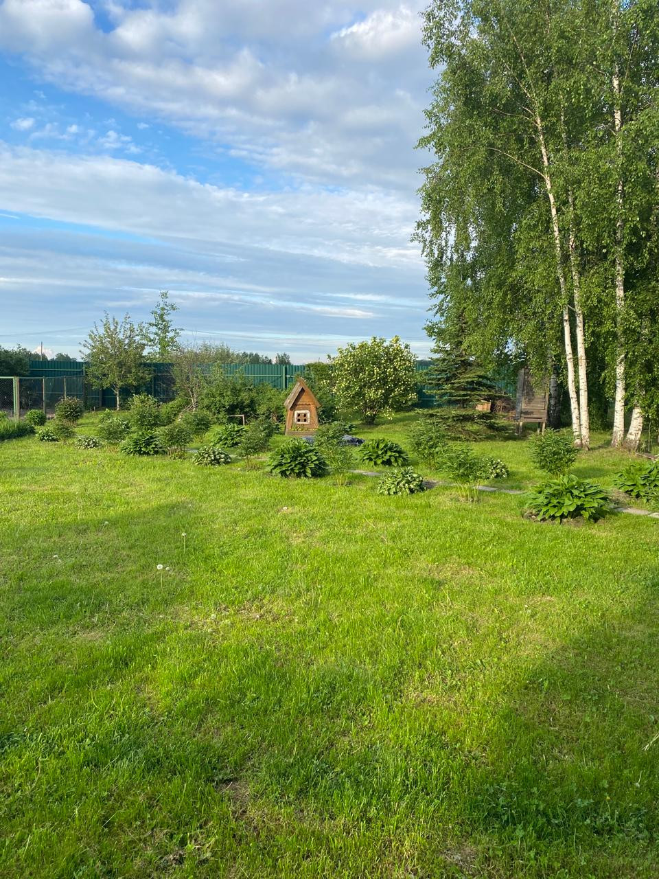 - БЕСЕДКА 6*5 не утеплена, но застеклена, свет подведен. В беседке летняя кухня, камин, место под казан, коптильня.