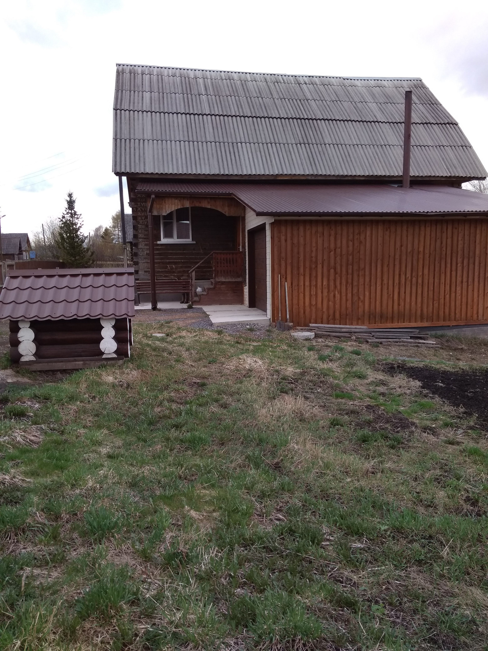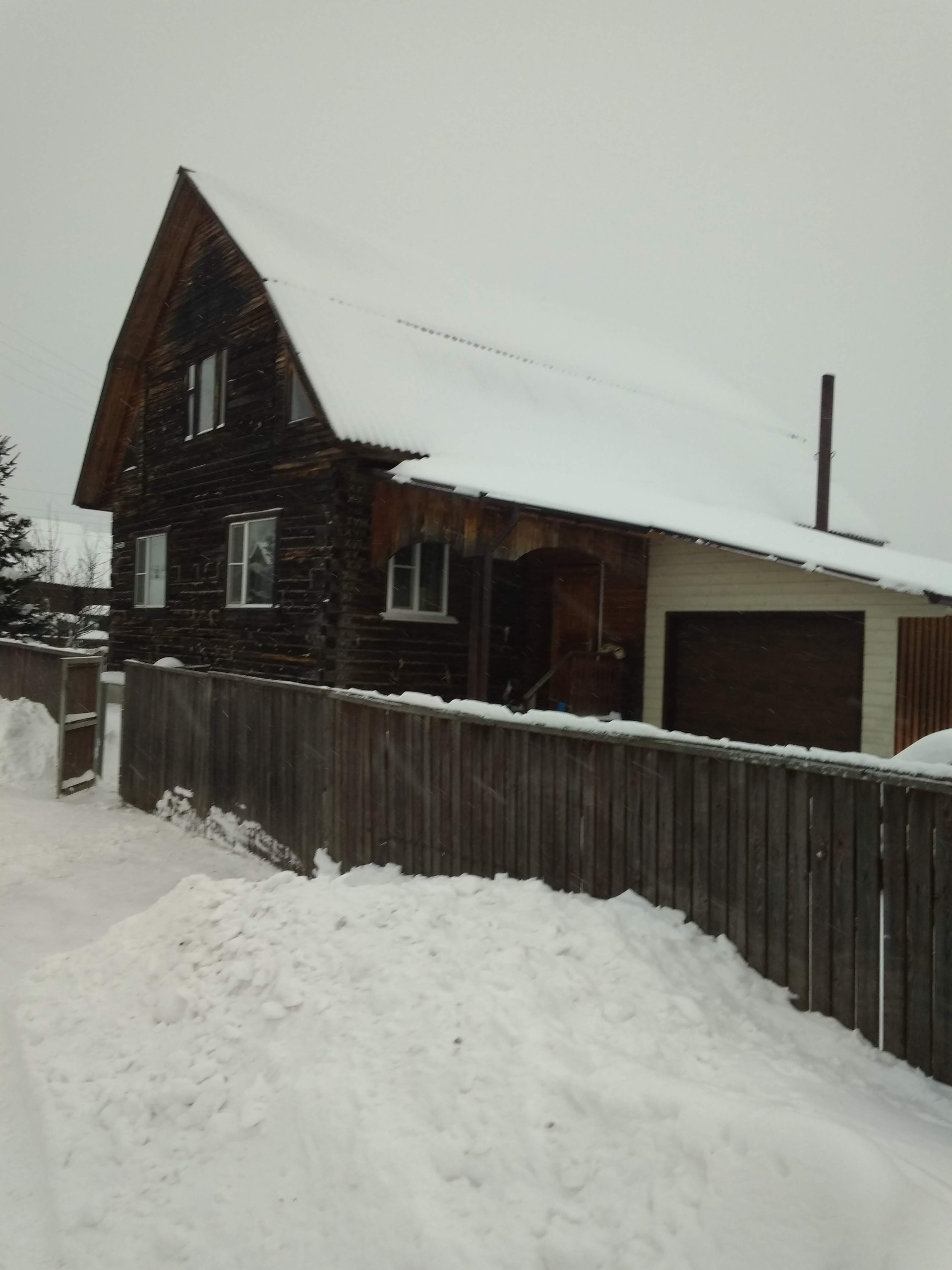 Дом в 3 км от города, теплый, отапливается от дровяной котла, имеется электро котел, в 2019 вдоль дома проведен газ, возможно подключение, в дом подведена вода, две скважины, канализация, септик, имеется баня, беседка, новый сарай, дровенник, в доме есть погреб, подвал. Ванная комната, санузел совмещенный, на первом этаже две комнаты 28 и 24кв.м., кухня гостиная 26 кв. М., теплый гараж с автоматическими воротами и с выходом прямо в дом. На втором этаже две комнаты и холл, требуется отделка. На первом этаже комнаты поклеенв виниловыми обоями, пол в кухне и зале ламинат, в ванной плитка. Участок плодородный, есть фруктовые деревья и ягодные кусты. Вид из окна на заливной луг и набережную города, в шаговой доступности 200 м. река с  песчаным пляжем.