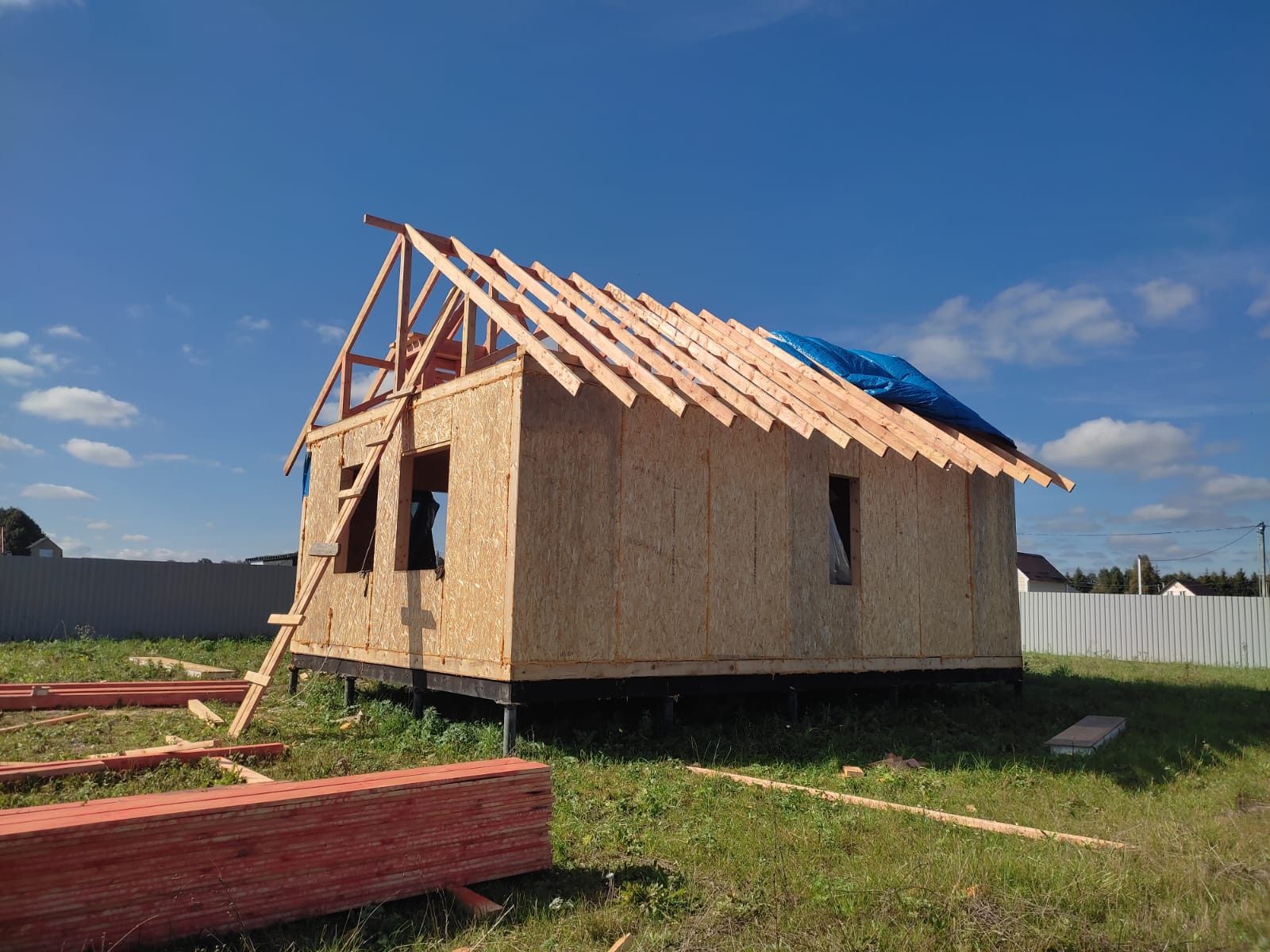 Дом 8,5х5,5 из СИП панелей, в процессе строительства, без отделки,