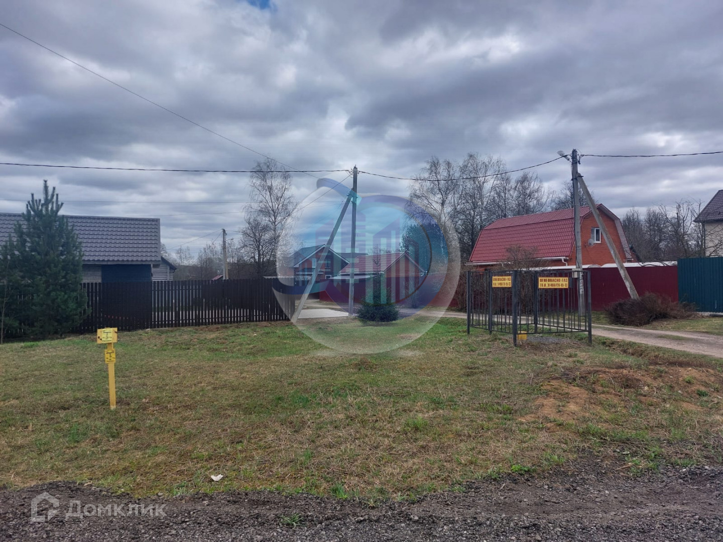 В деревне. ИЖС по документам. По границе участка газовая труба! Участок с широким заездом.