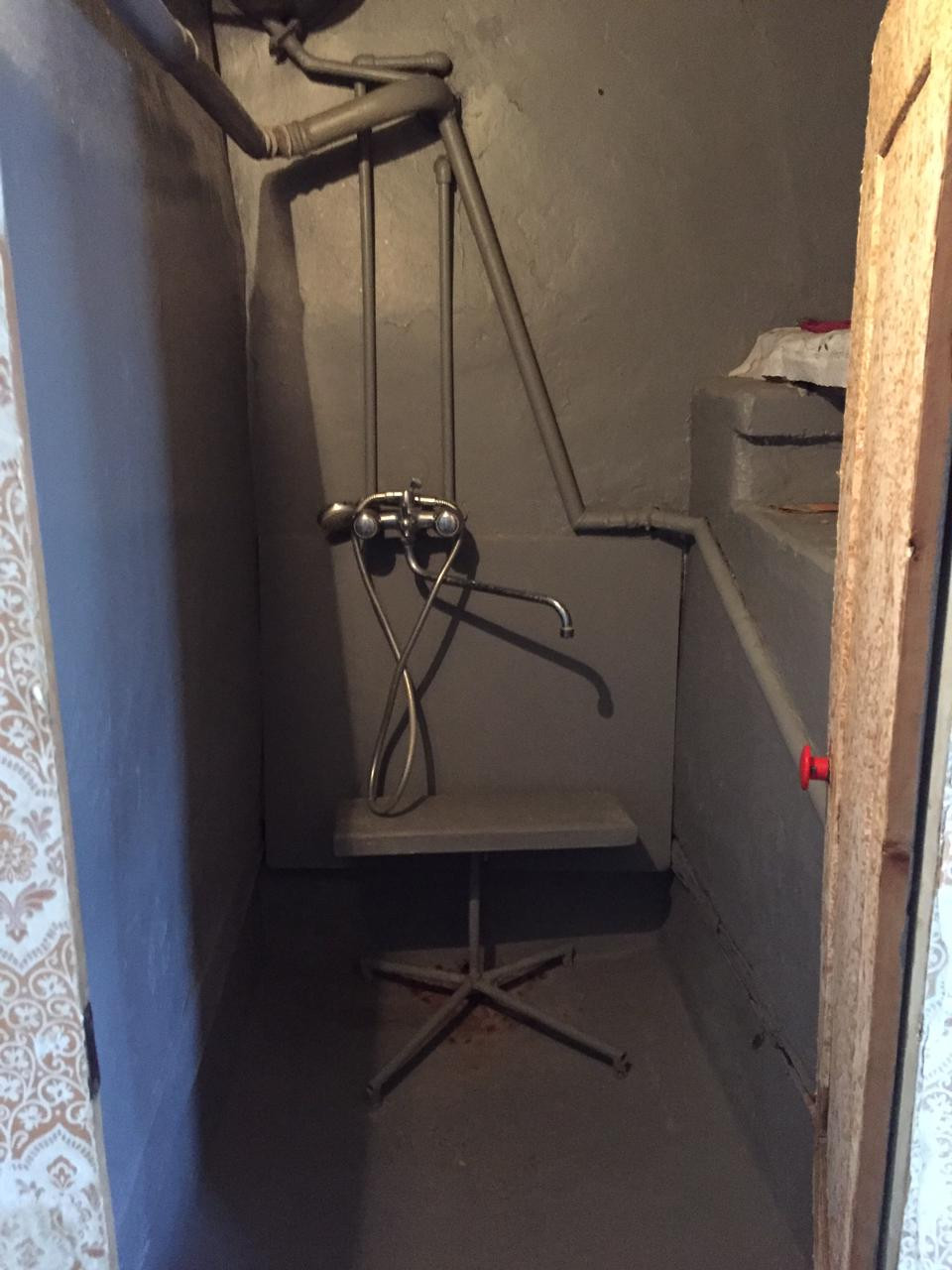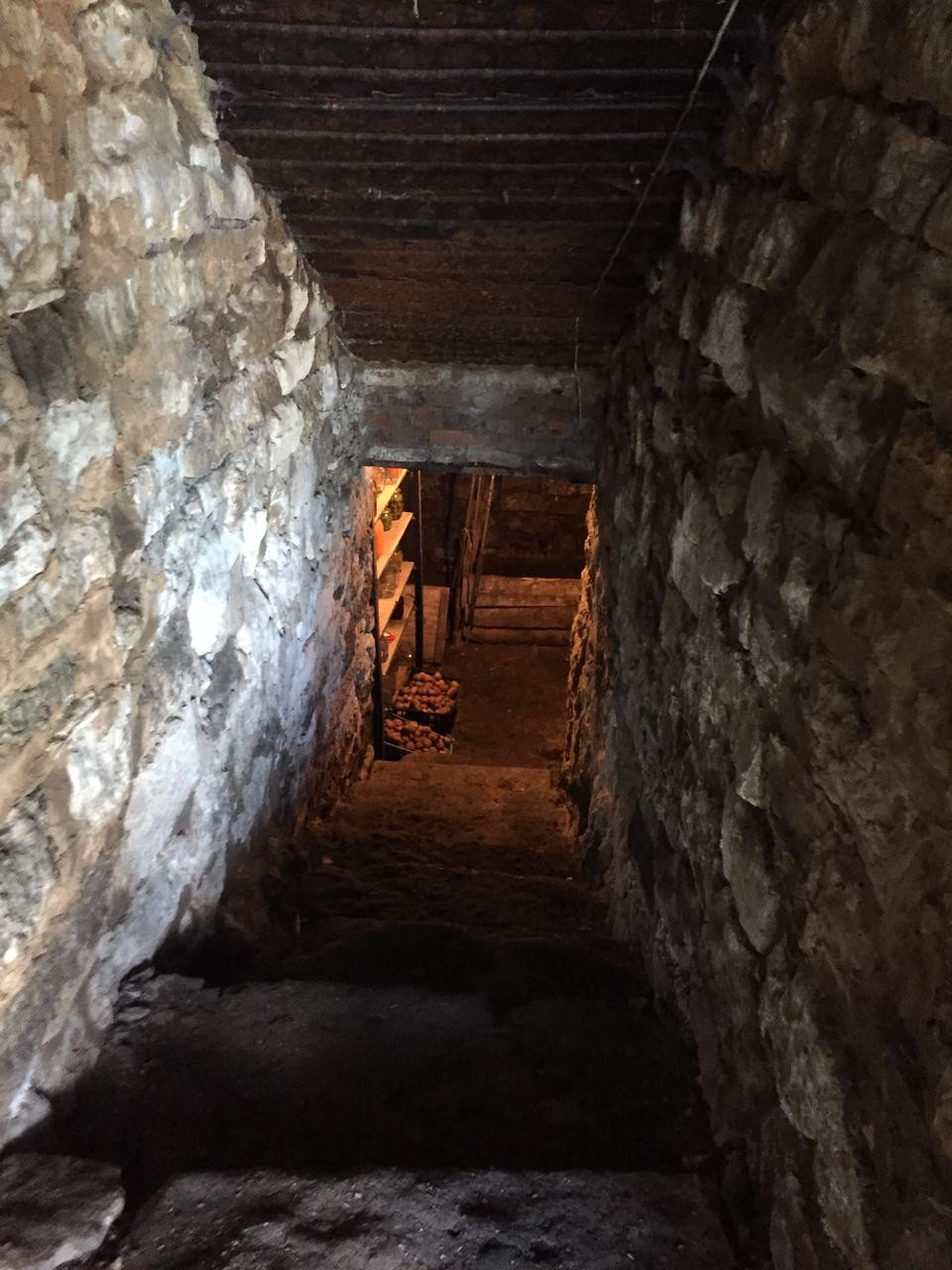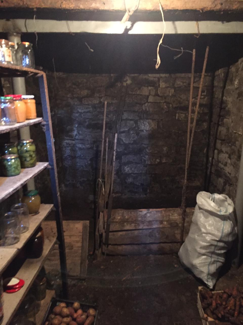 глубокий каменный погреб с деревянным сараем над ним.