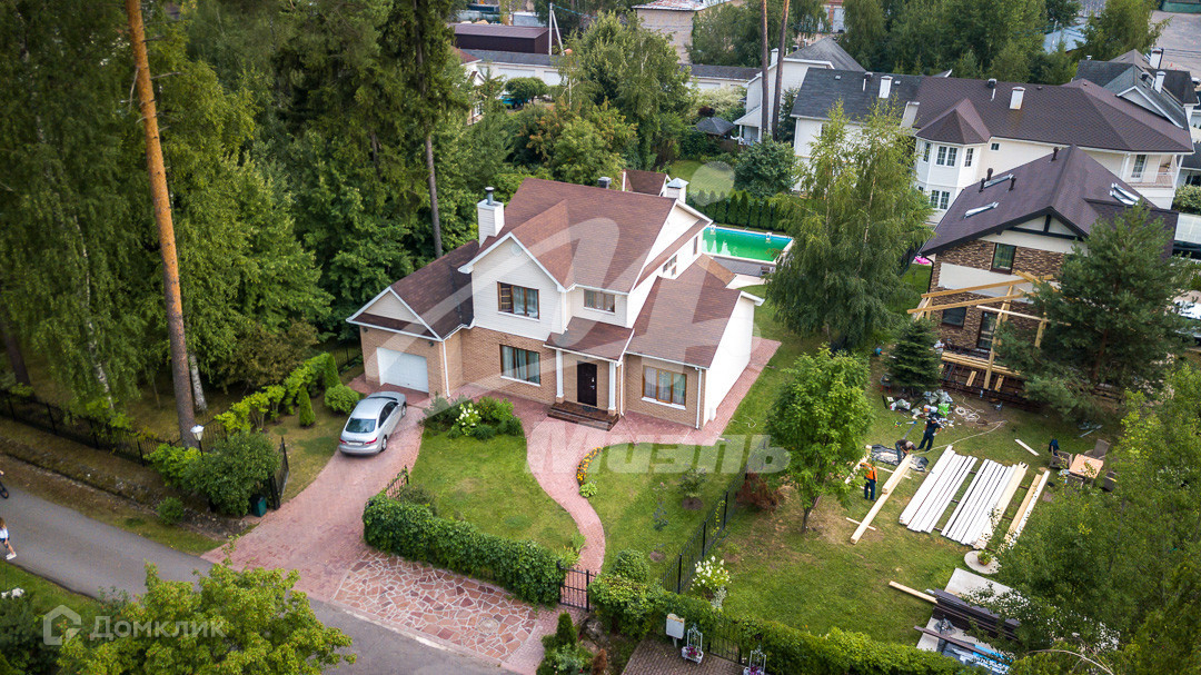 Участок 8,5 соток, правильной формы. На участке газон, выложены тропинки, есть зона отдыха и бассейн с подогревом, также хозяйственный блок. Категория земли ИЖС.