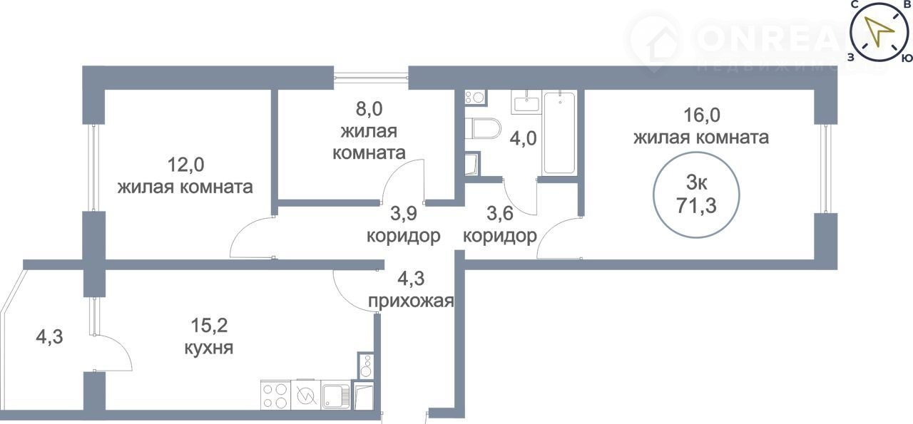 Общая площадь 71.3 м2
