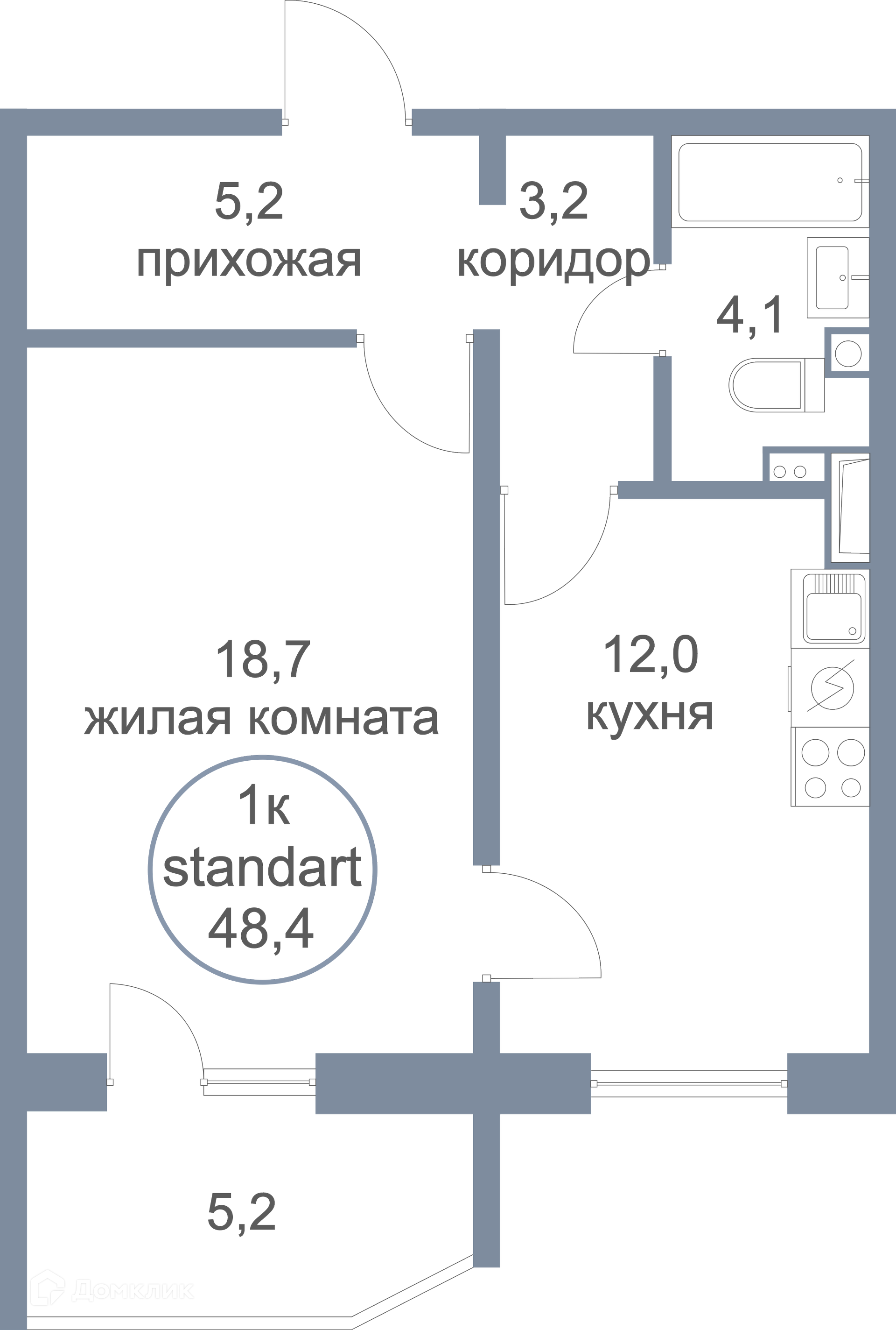 Общая площадь 48.4 м2