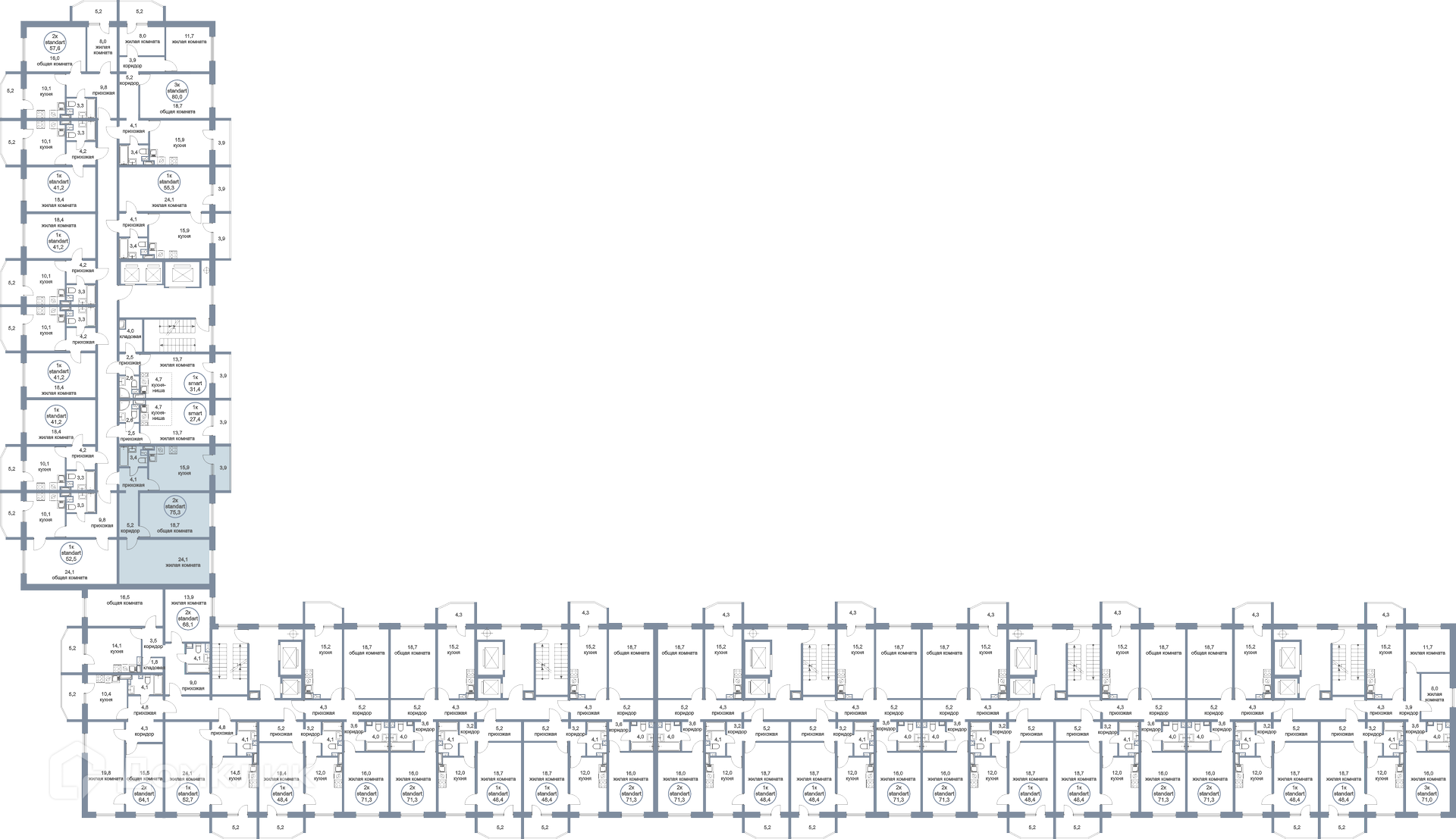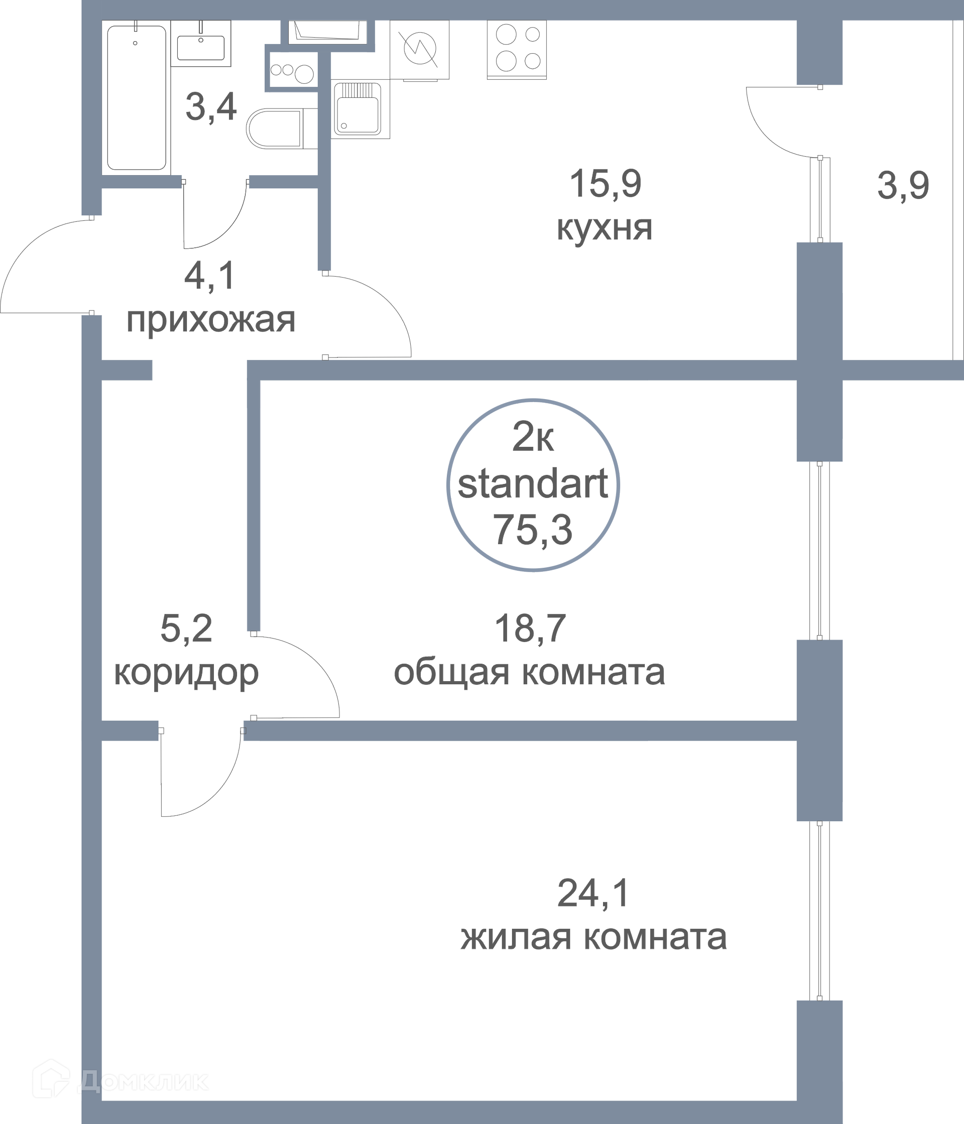 Общая площадь 75.3 м2