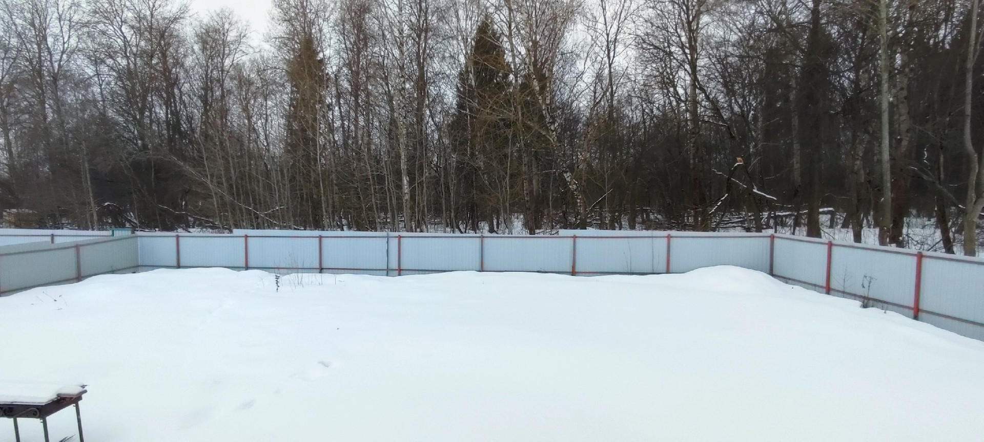 Участок ровный, примыкает к лесному массиву (грибы, ягоды), есть мангальная зона, отсыпана парковка на две машины, детский батут.