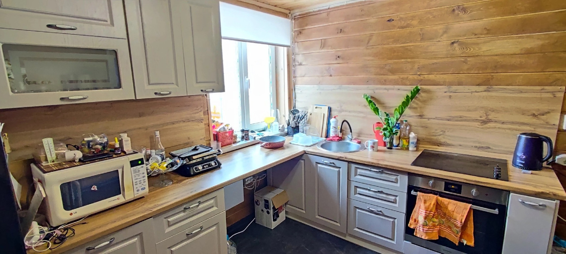 Коммуникации: свет 15кВт, вода скважина, септик, отопление электрическое - конвекторы (зимой в самый холодный месяц не более 6т.р, деревенский тариф.)