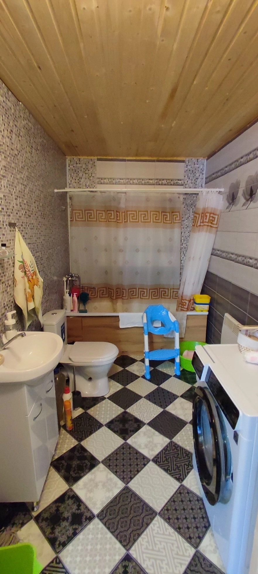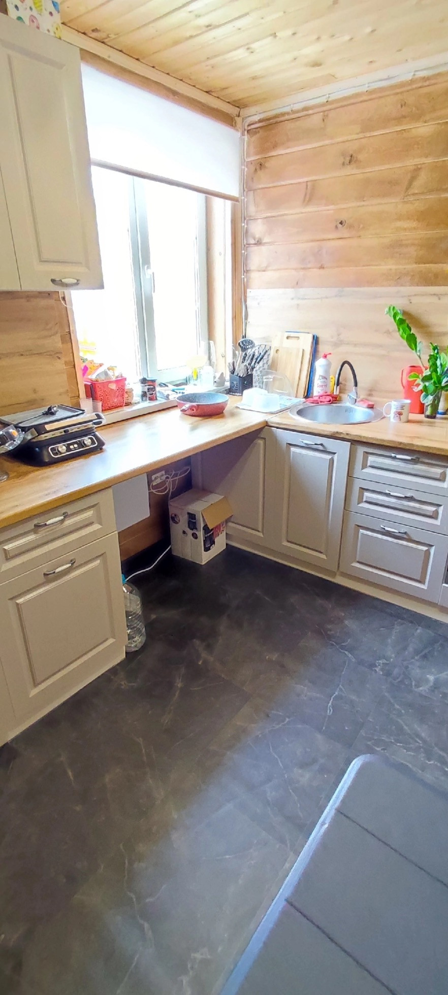 В доме на первом этаже большая открытая терраса, просторная кухня, гостиная, санузел, холл и вместительная комната под лестницей для хранения вещей,овощей, закаток .