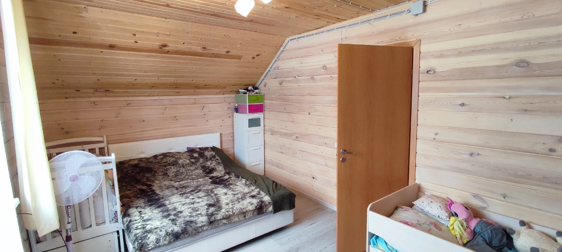 На втором этаже две спальные комнаты и гардеробная.