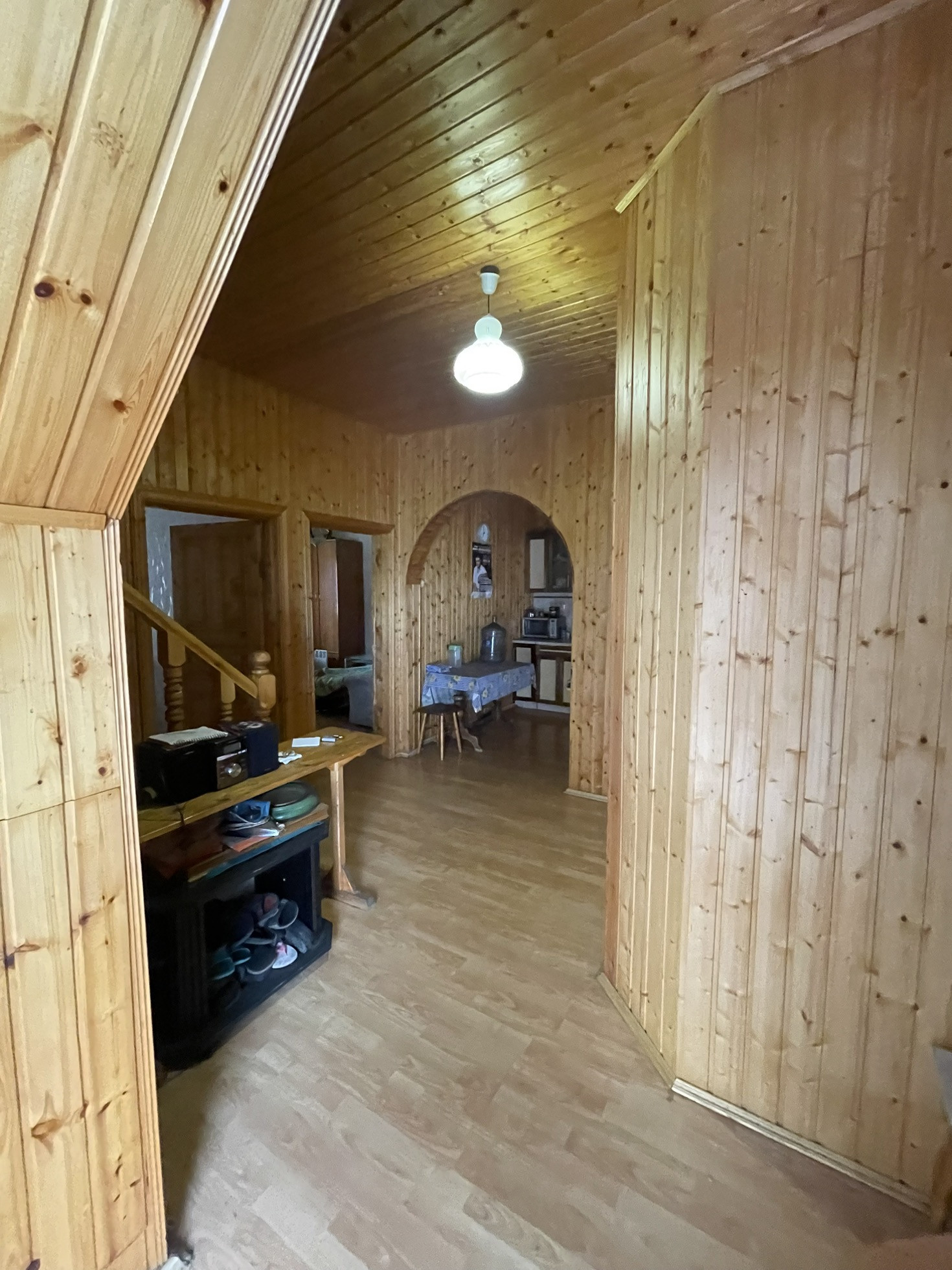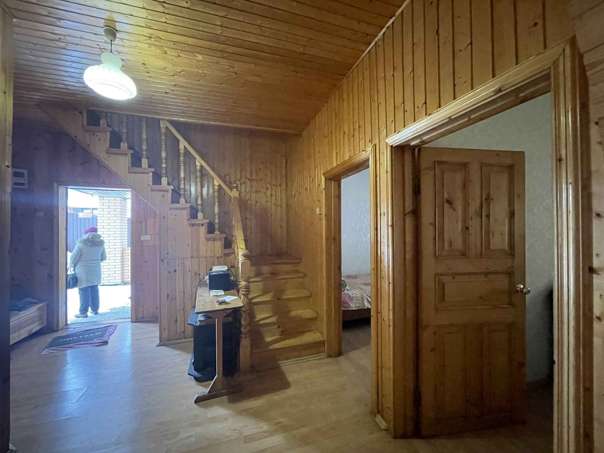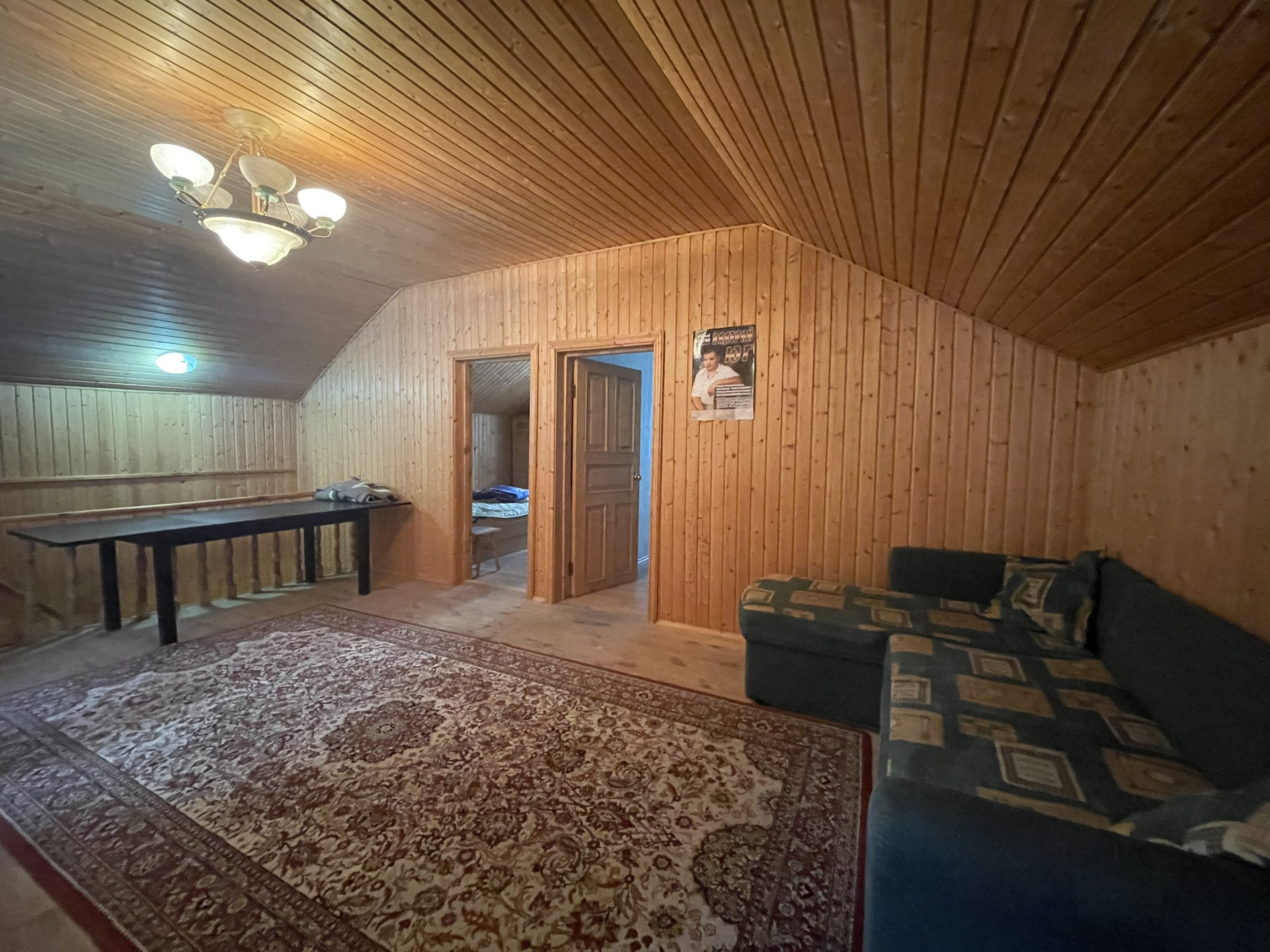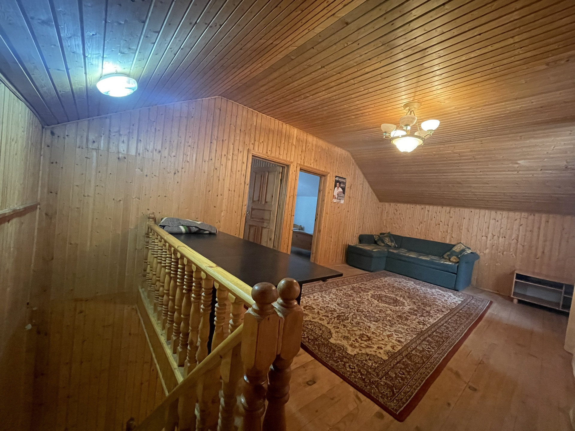 Дом 2-х этажный утепление из бруса. Снаружи отделка кирпичная. На 1- м этаже имеется  кухня - гостиная,  2 спальни, площадью по 16 кв. м, санузел. На 2-м этаже: большой хол, д