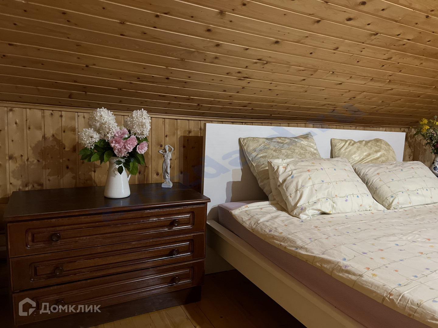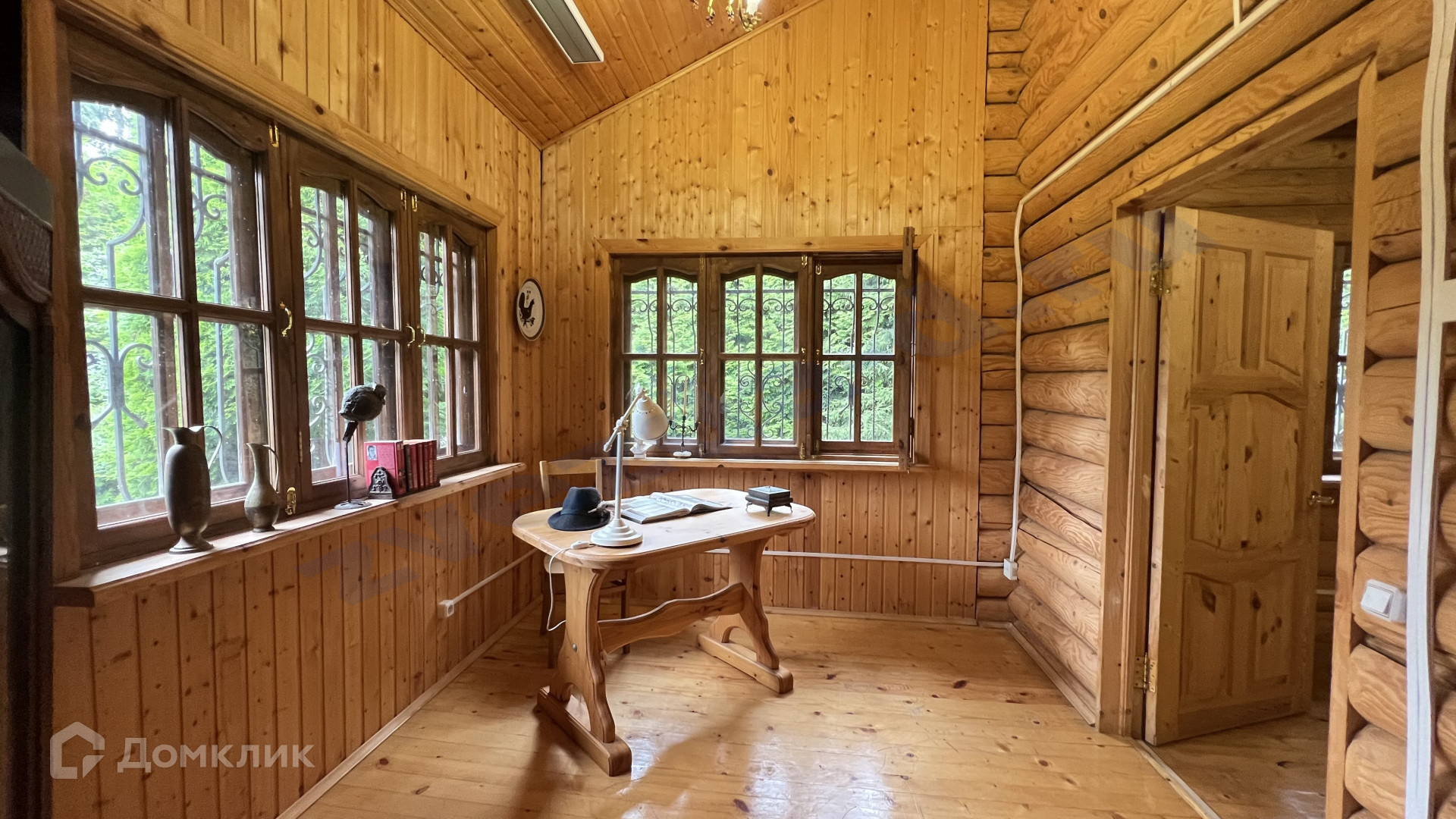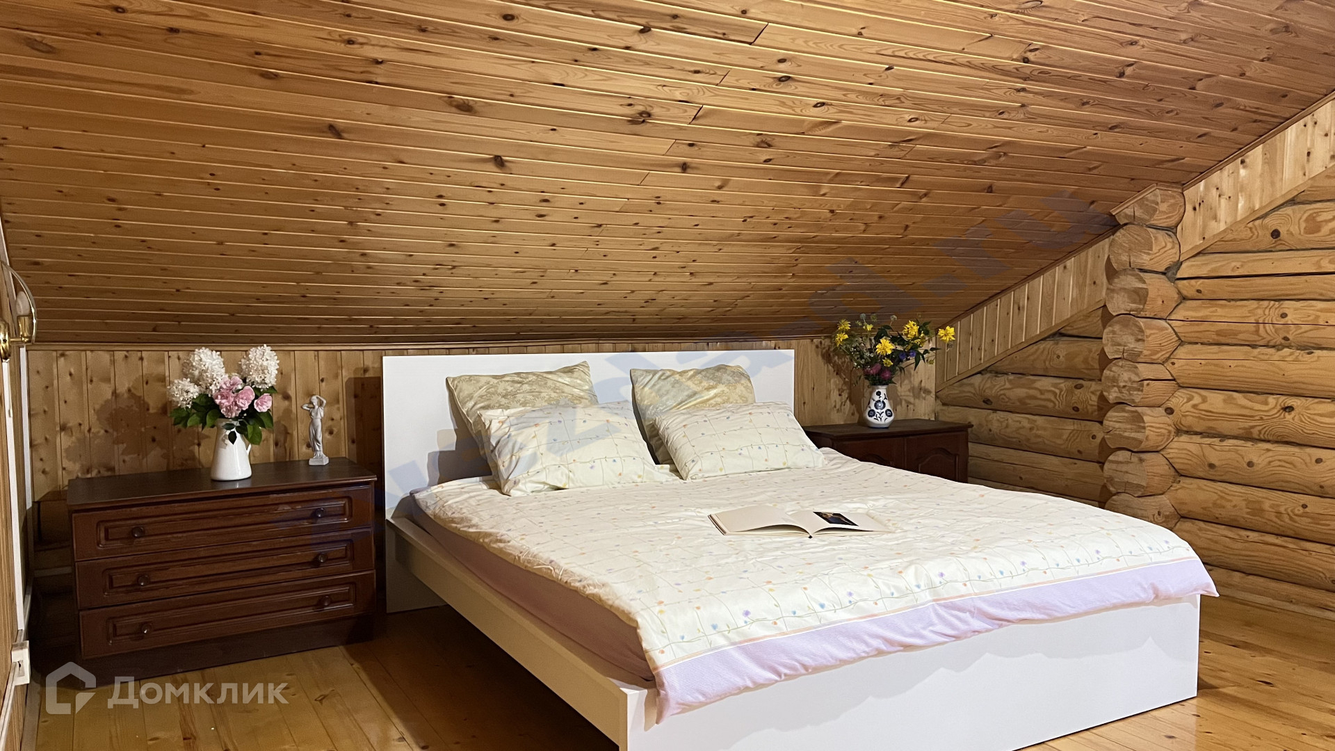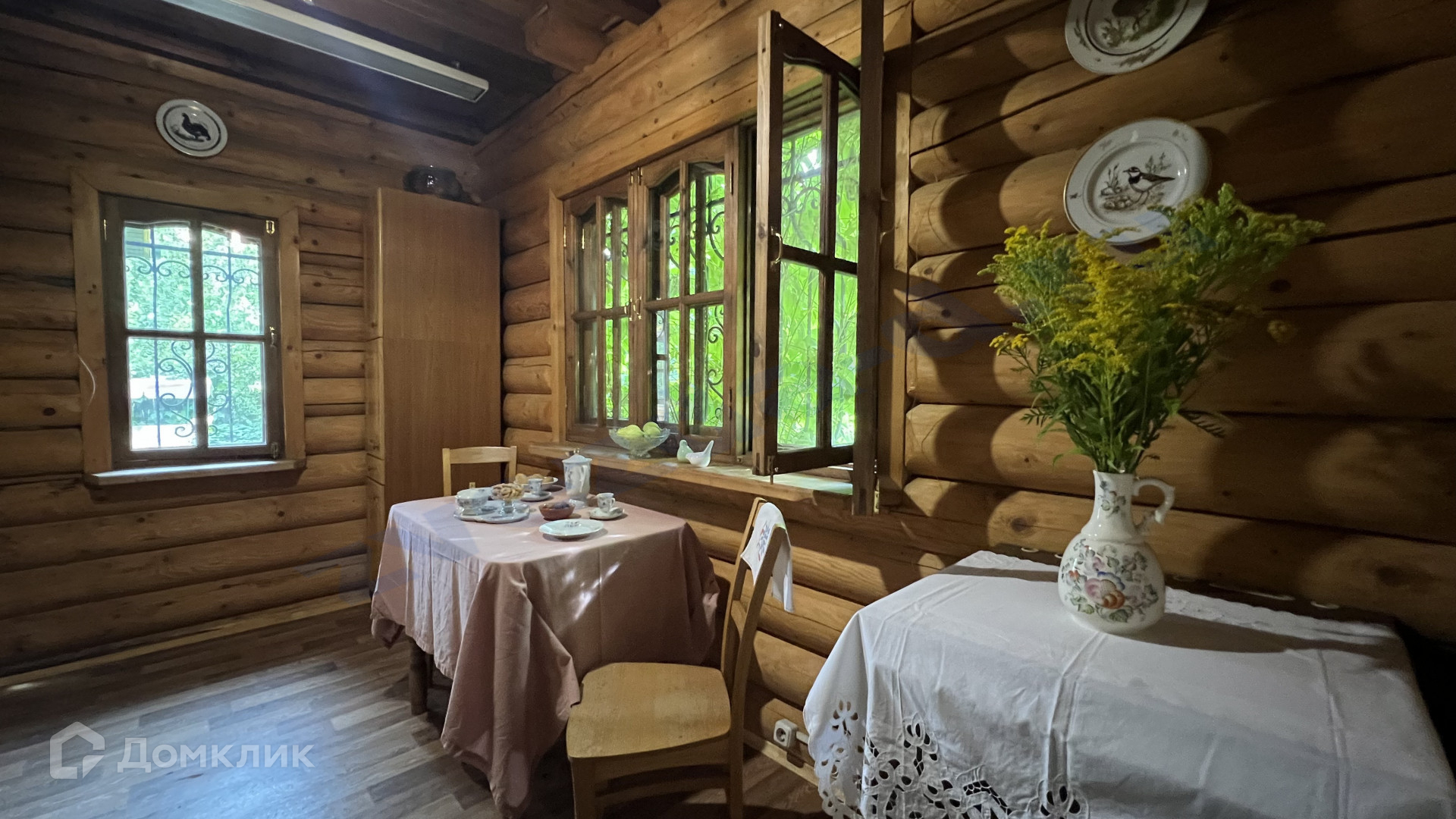 Дом бревенчатый около 140 м2, двухэтажный. Комнат 5: гостиная с эркером, спальня на 1 этаже, кабинет, две спальни на втором этаже. Кухня с печью в которой вы сможете выпекать хлеб и пирожки, а может и приготовите кашу в горшке.