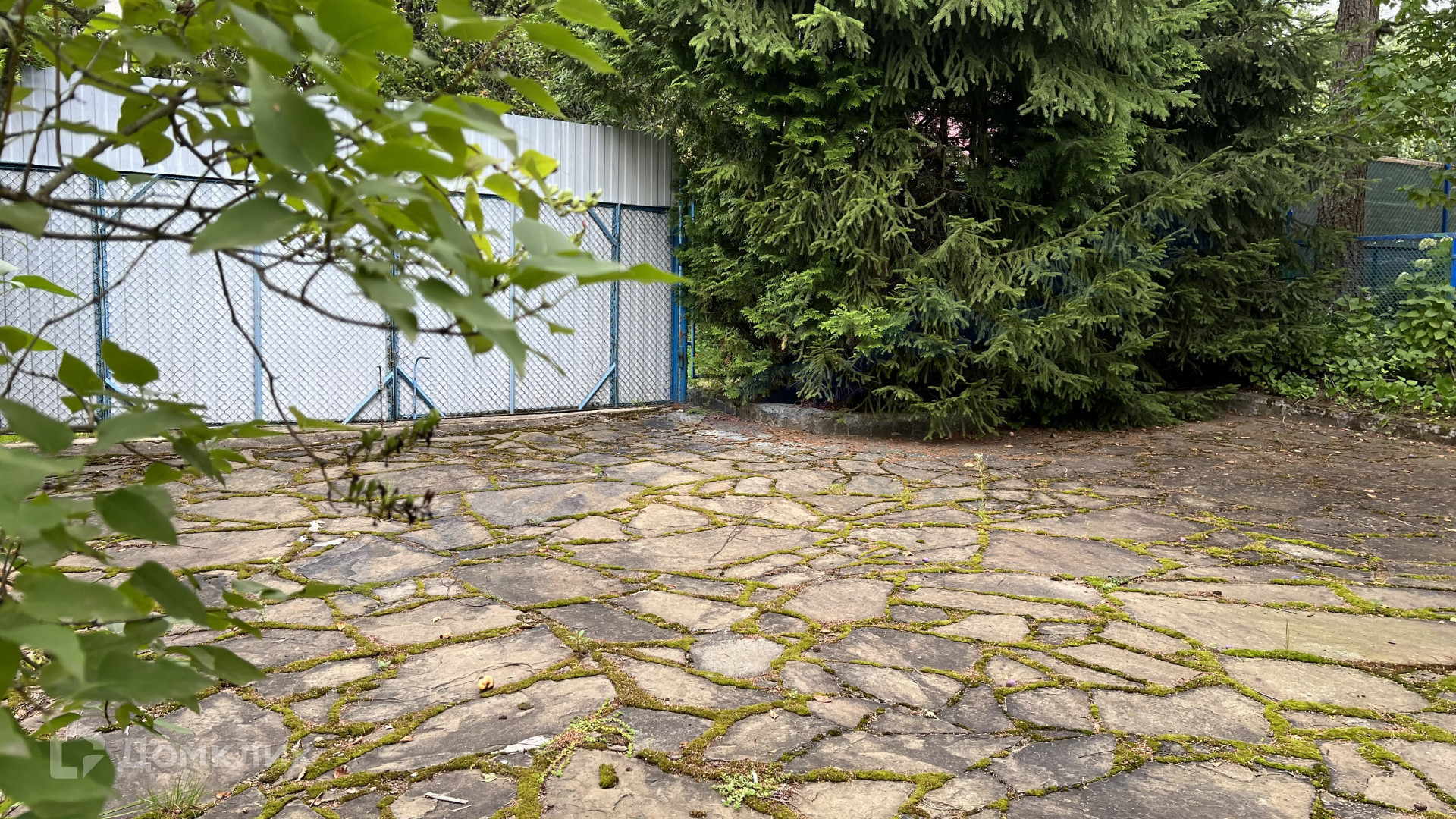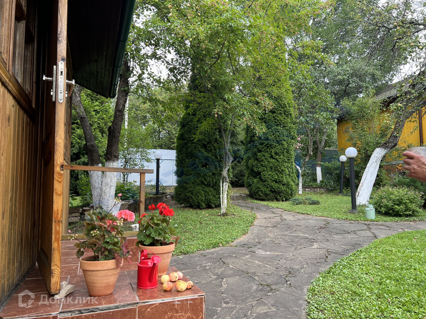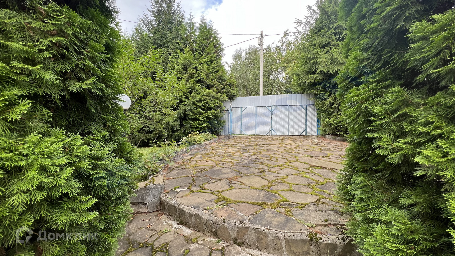 На участке парковка, декоративные и садовые насаждения, дорожки.
