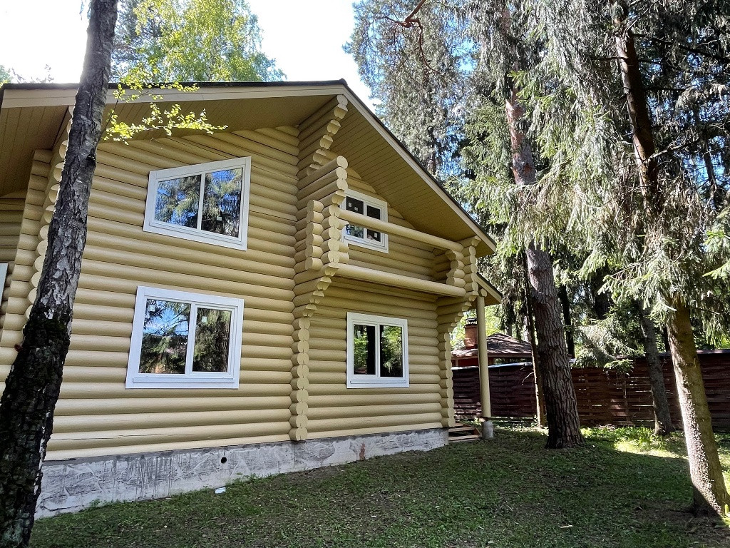 Коттедж 200 м² (бревно диаметром-280 мм) произведено из Красноярского экспортного леса.
