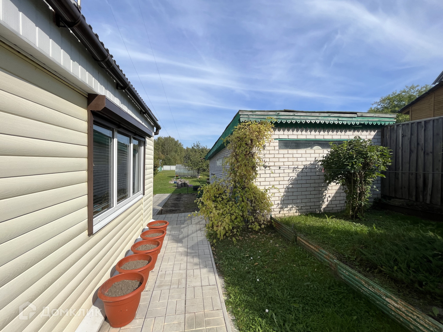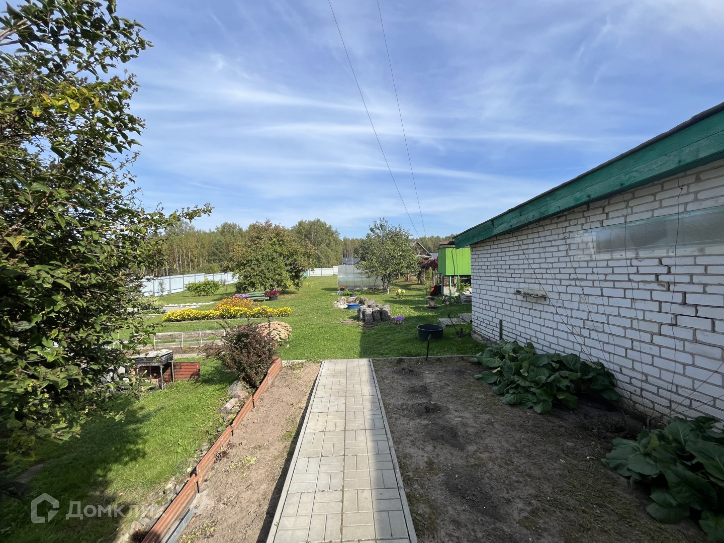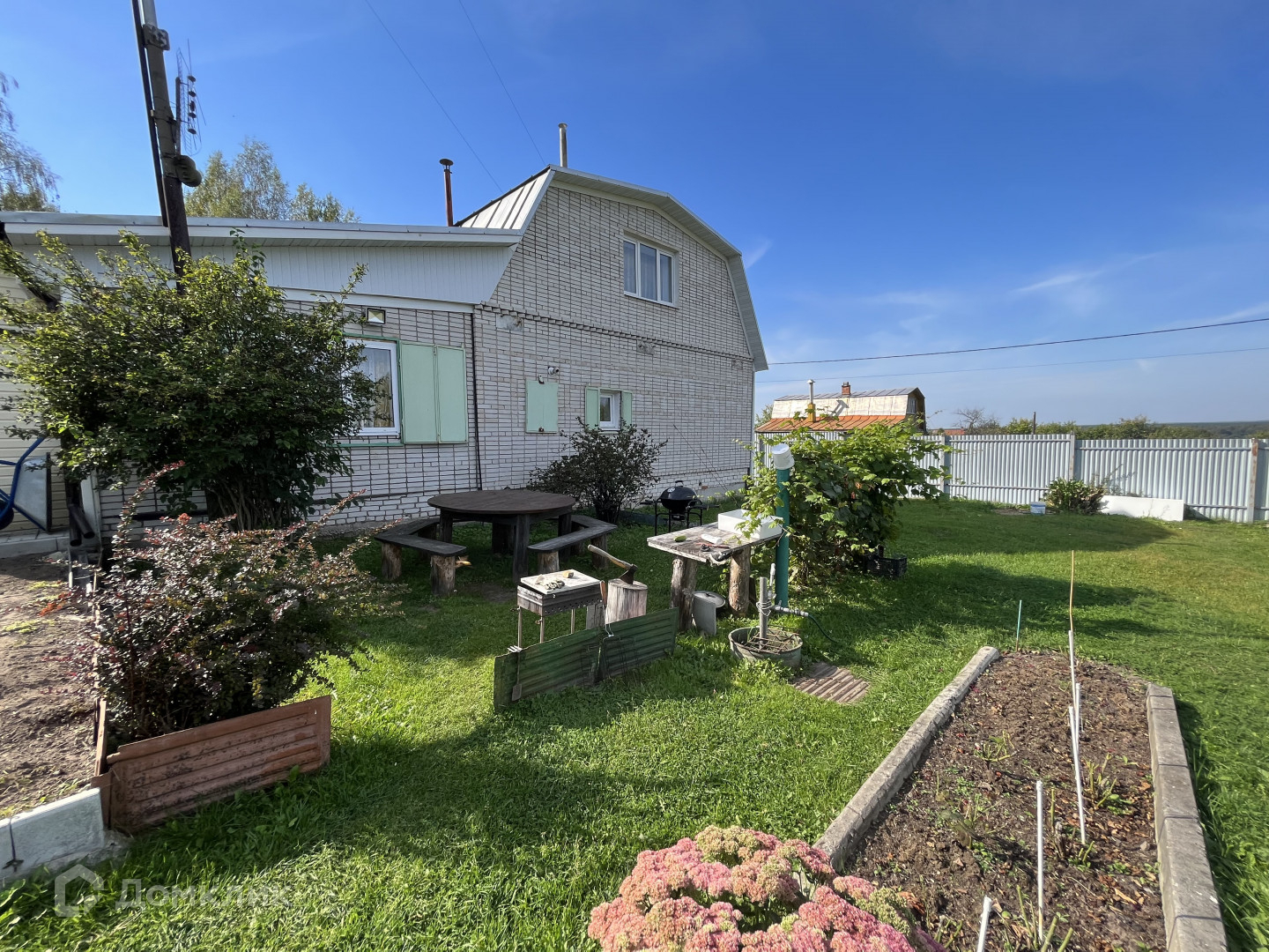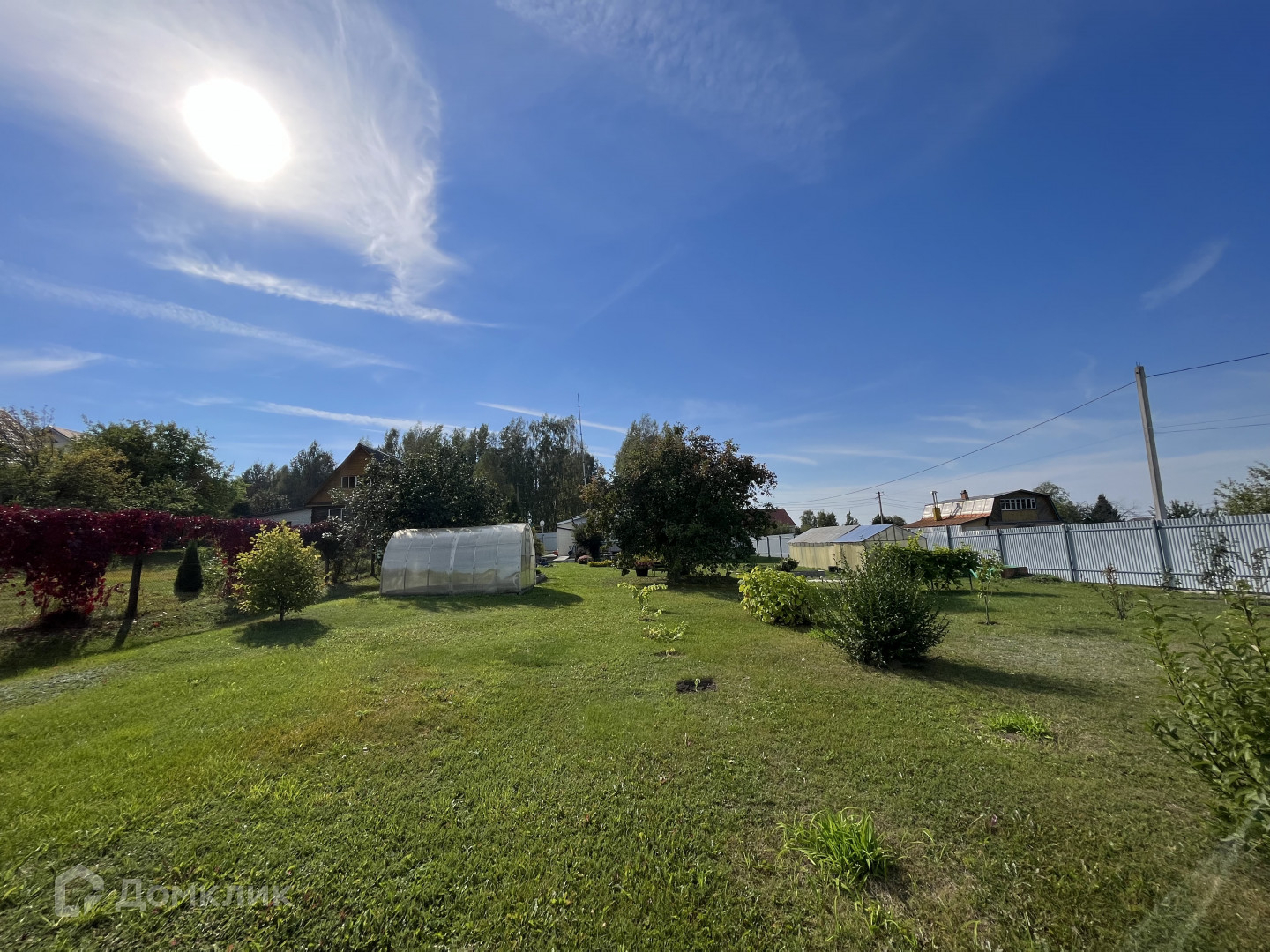 На участке : хорошая действующая баня, зона отдыха, туалет, кирпичная хоз. постройка, теплица, цветы, яблони, груши .