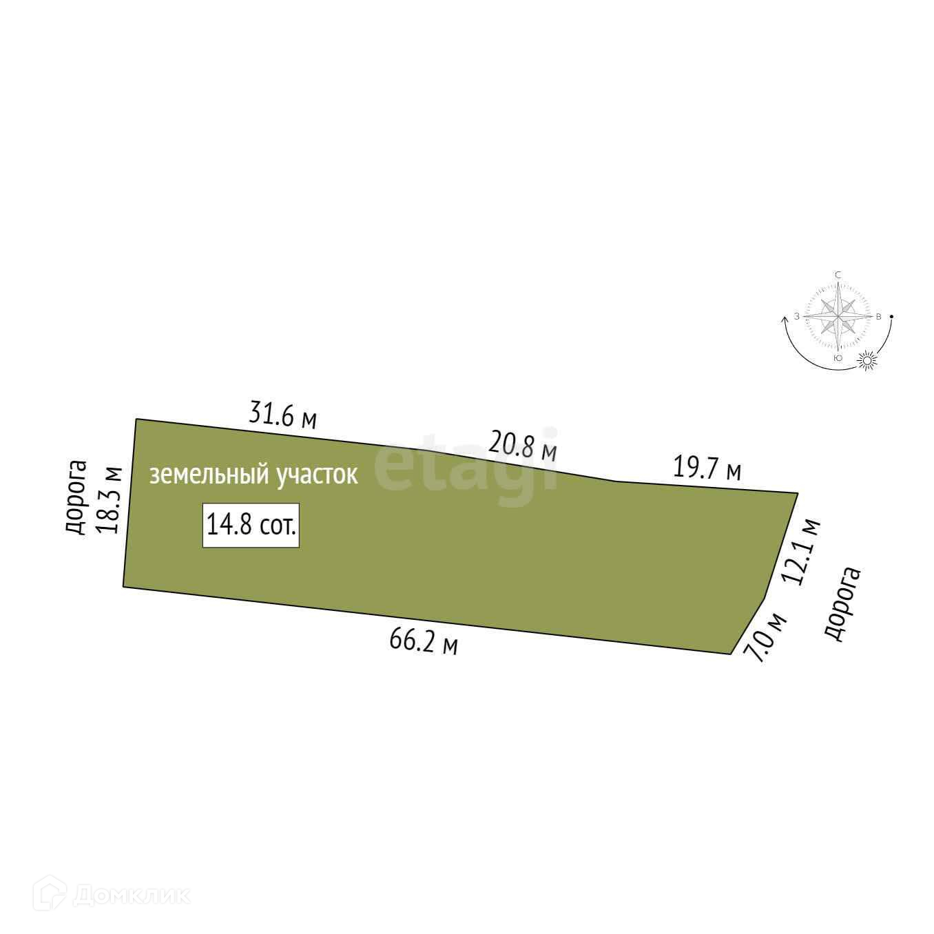 Площадь участка 14.8 сот.