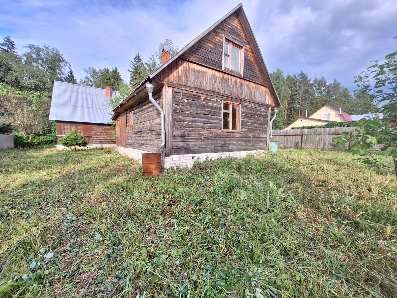 Участок 10 соток достойно спланирован правильной формы и огорожен металлическим забором. Много плодовых деревьев. Есть ворота и стоянка для машин. Подъезд круглогодичный. Многие соседи живут круглогодично. На участке находятся 2-этажный ЖИЛОЙ дом с пропиской. Баня одноэтажная 20 кв.м. и функционирует. Есть третье строение . Колодец, септик. Есть дровянная печь.