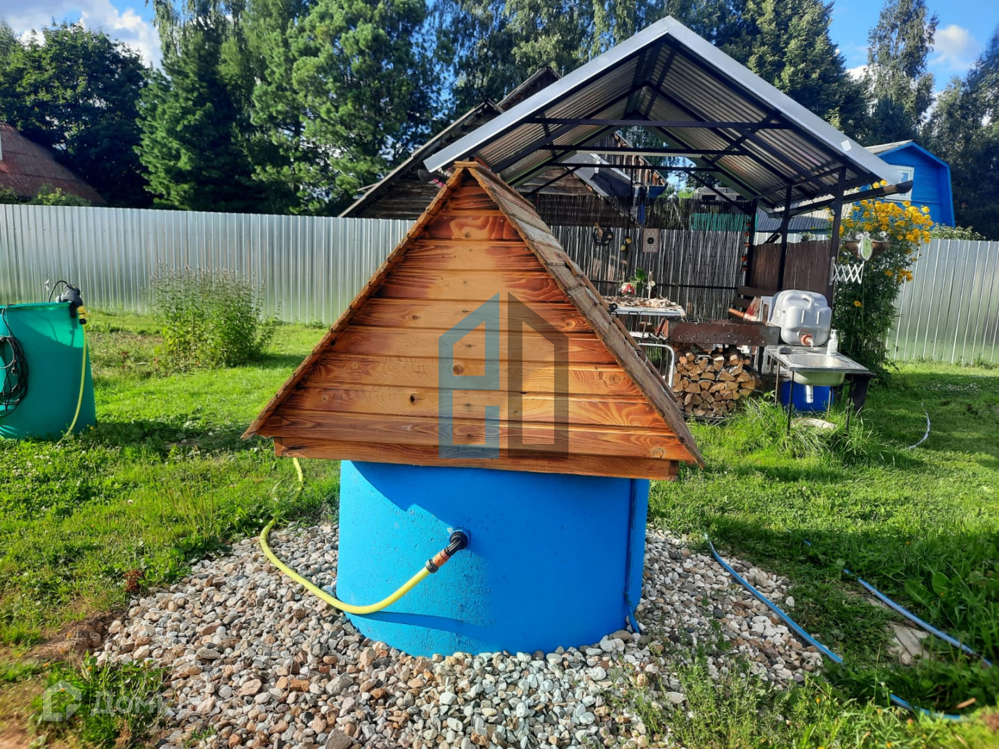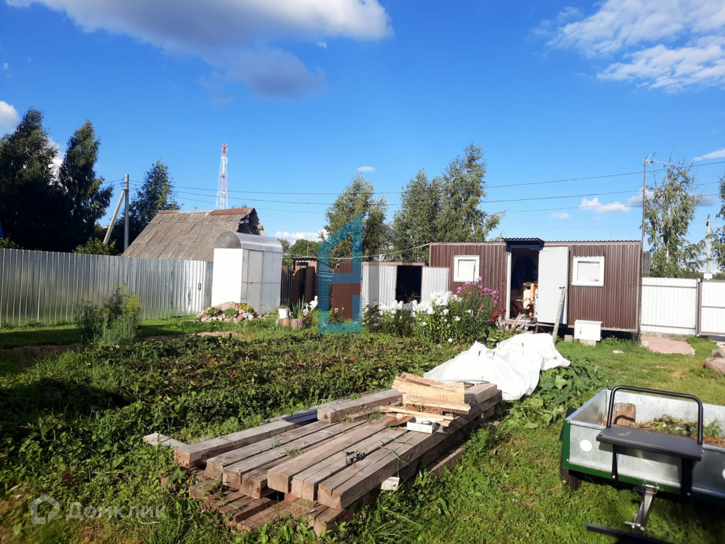 На участке имеется колодец ,бытовка, вагончик для проживания ,сарайчик ,душевая.