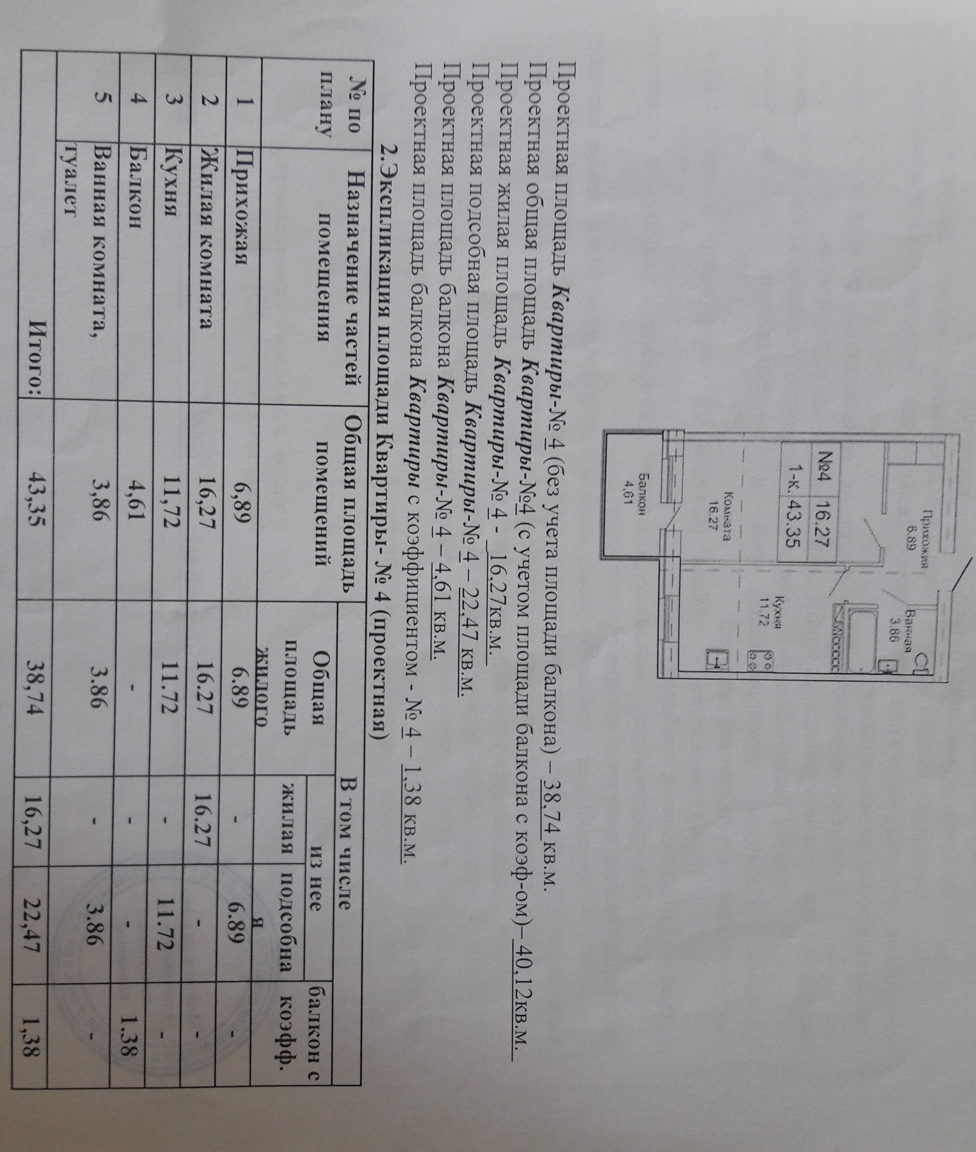 Общая площадь 43.3 м2