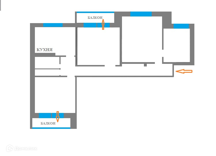 Две комнаты с остекленными балконами.