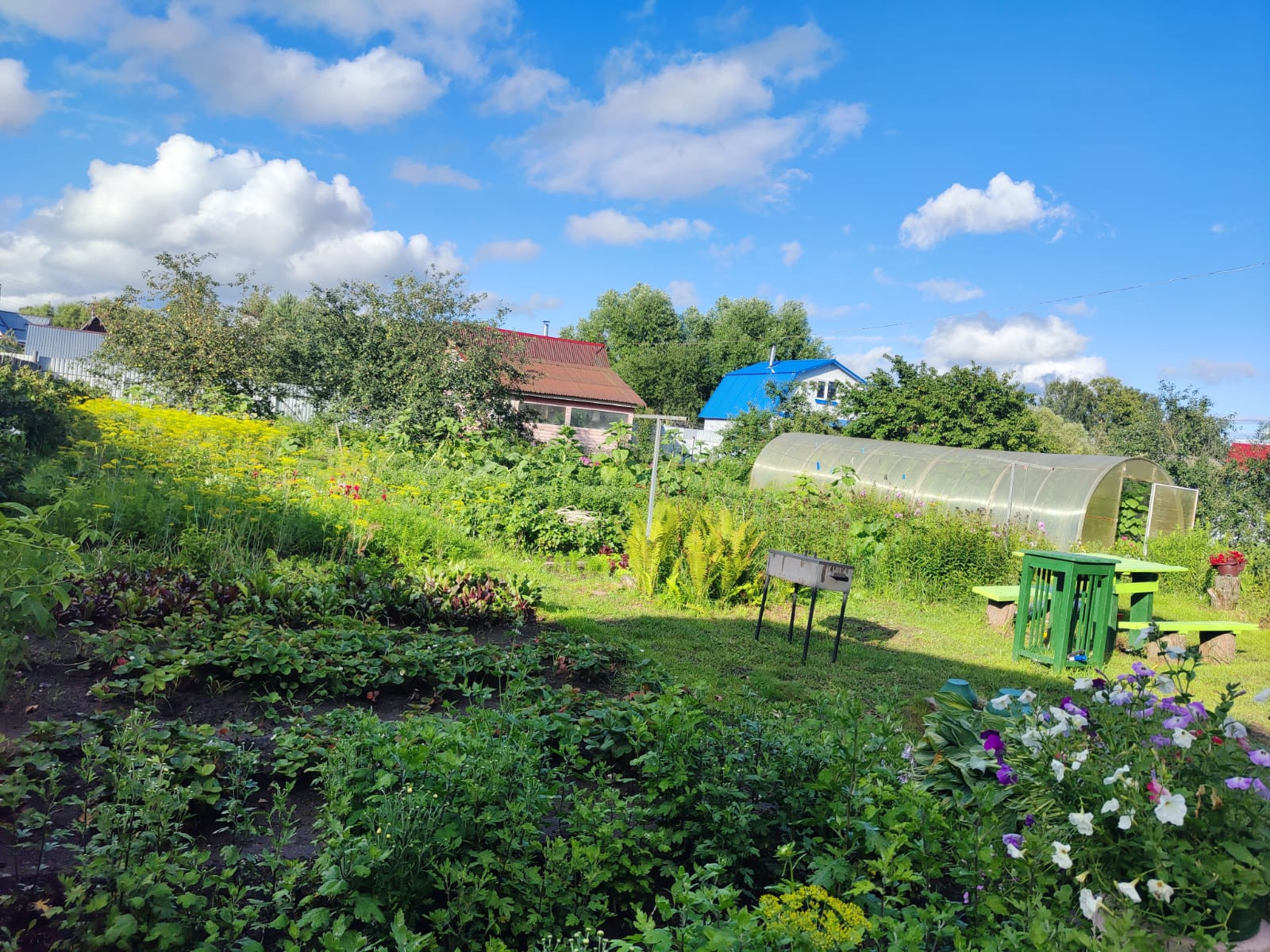 Плодовые деревья и кустарники, многолетние цветы.