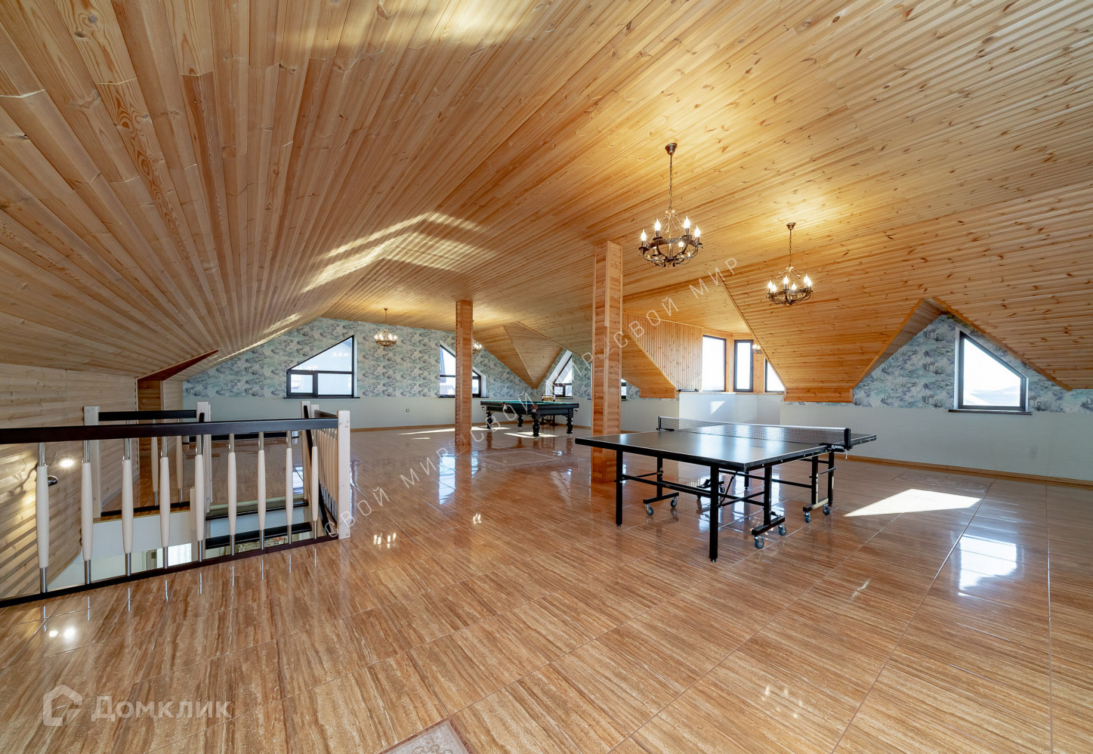 Третий этаж имеет свободную планировку “OPEN SPACE”. Оборудован под зону отдыха с бильярдным и теннисным столами и аэро-хоккеем. Идеальное пространство для размещения просторного домашнего кинотеатра.