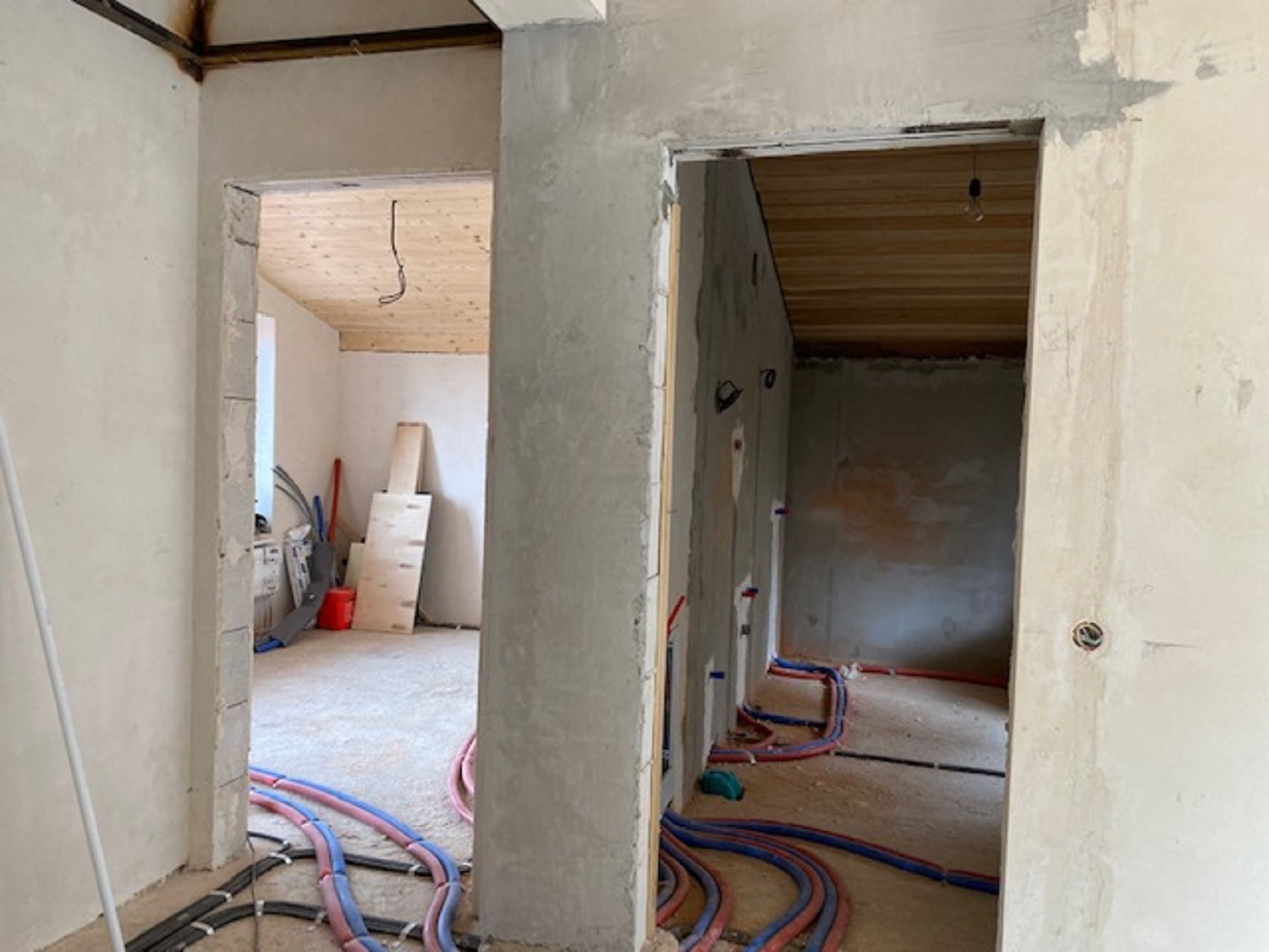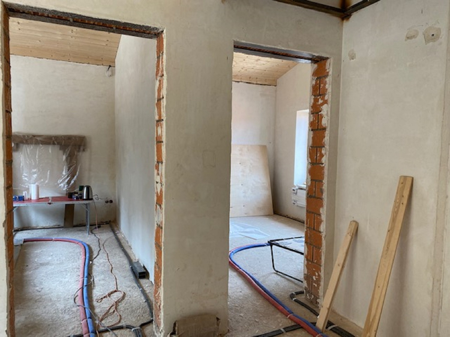 Один из самых удачно расположенных участков в КП. Двухэтажный теплый кирпичный дом, все коммуникации проведены и функционируют. Установлен водонагреватель, полотенцесушитель, газовый котел с дистанционным управлением, бойлер на 100 литров,  электрический теплый пол выведен в тамбур и на балкон (тамбур и балкон дополнительно отделаны кирпичом и утеплены), теплый пол на кухне, два санузла (один из них с балконом), потолки в доме - сосна, потолки в санузлах - лиственница, стены выровнены и отштукатурены. Сделан утепленный цоколь, пешеходная дорожка, парковка на две машины.