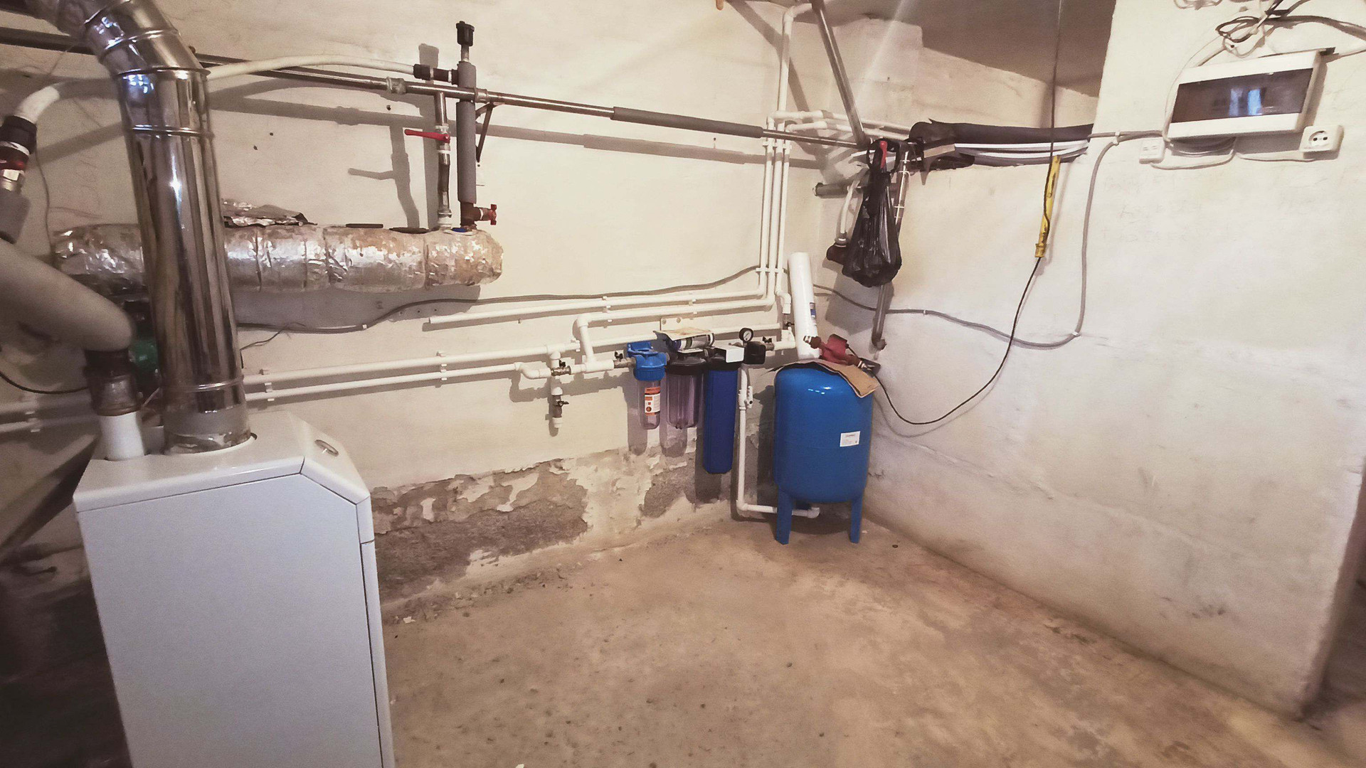 Дом газифицирован, отопление от газового котла. Подведено 3-фазное электричество. Водоснабжение из личной скважины. Канализация - септик с переливом - 24 кб.м.