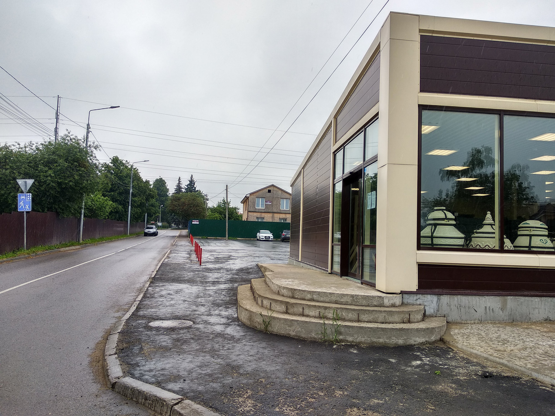 К участку примыкает асфальтированный, освещаемый в ночное время, подъезд с пешеходной дорожкой. Дом  расположен на второй линии от федеральной трассы и хорошо виден с неё. С двух сторон от участка имеются авто парковки. Участок огорожен высоким глухим забором и вытянут вдоль дороги Возможен раздел на два участка с отдельными въездами. Возможно  увеличение за счет свободных земель Администрации.