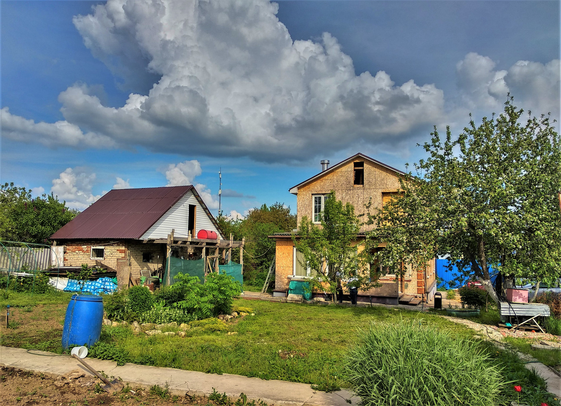 1 этаж – кирпич обшит ОСБ,  жилой.