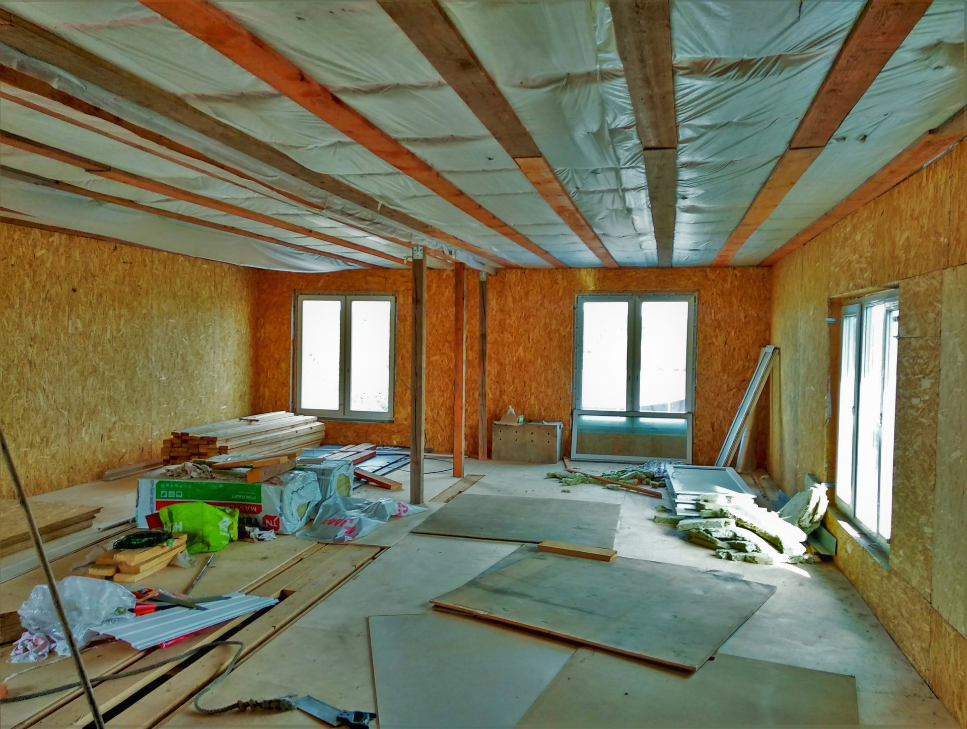 2 этаж - деревянный каркас обшит ОСБ, необходимо закончить  отделочные работы.